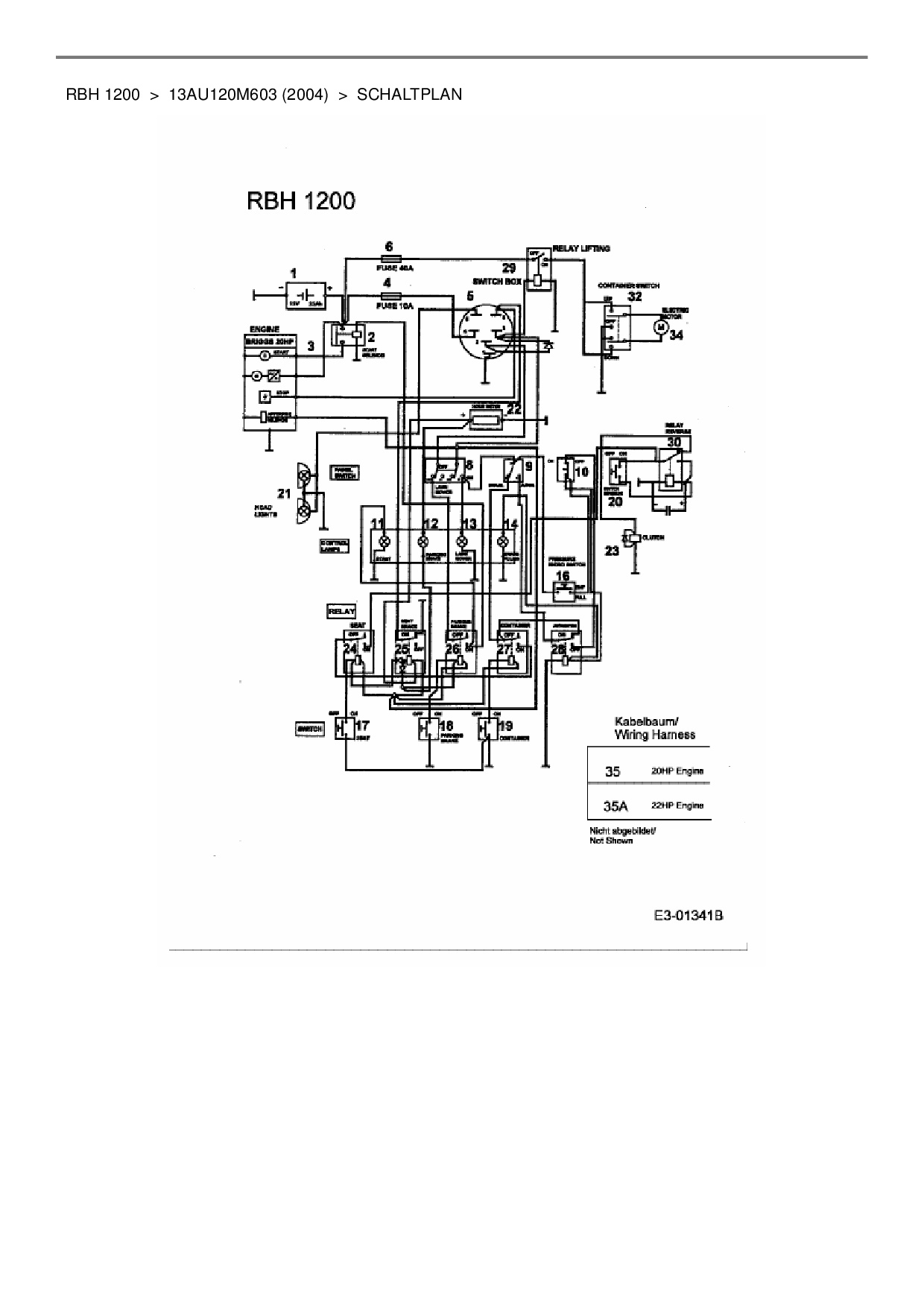 Ersatzteile für Rasentraktor Cub Cadet RBH 1200 aus der Zeichnung Schaltplan:
