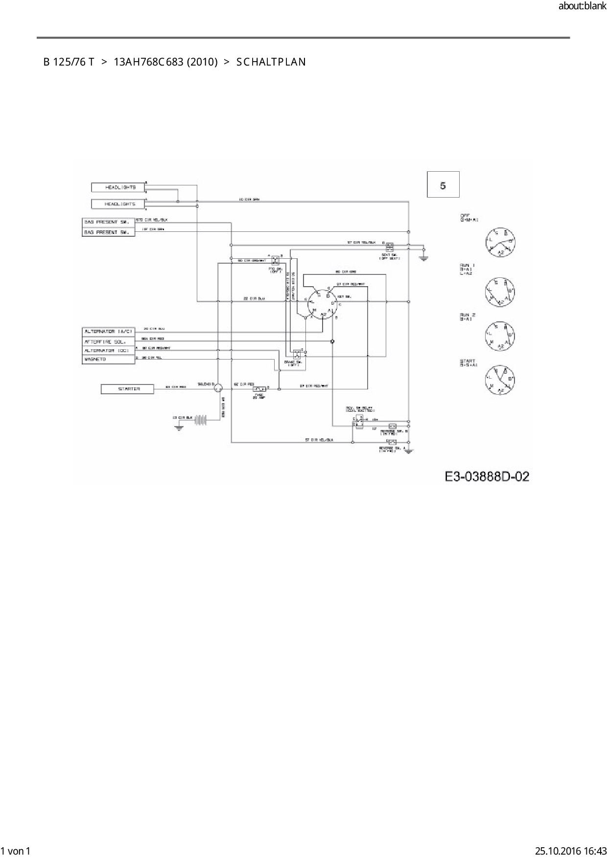 Ersatzteile für Rasentraktor Black-Line B 125/76 T aus der Zeichnung Schaltplan: