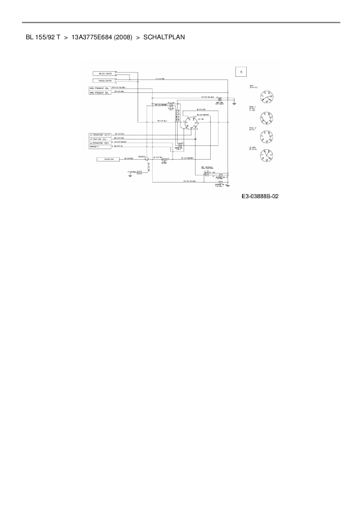 Ersatzteile für Rasentraktor Bolens BL 155/92 T aus der Zeichnung Schaltplan:
