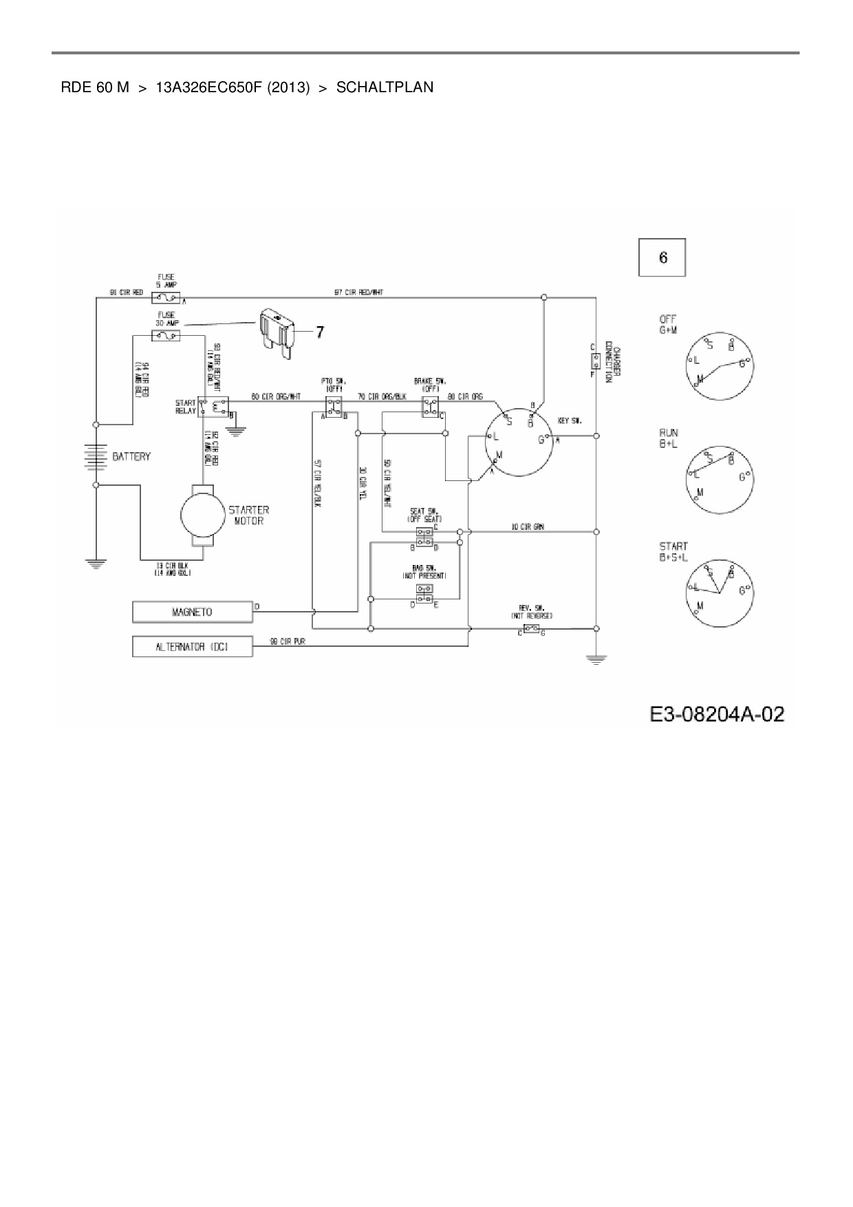 Ersatzteile für Rasentraktor Wolf-Garten RDE 60 M aus der Zeichnung Schaltplan: