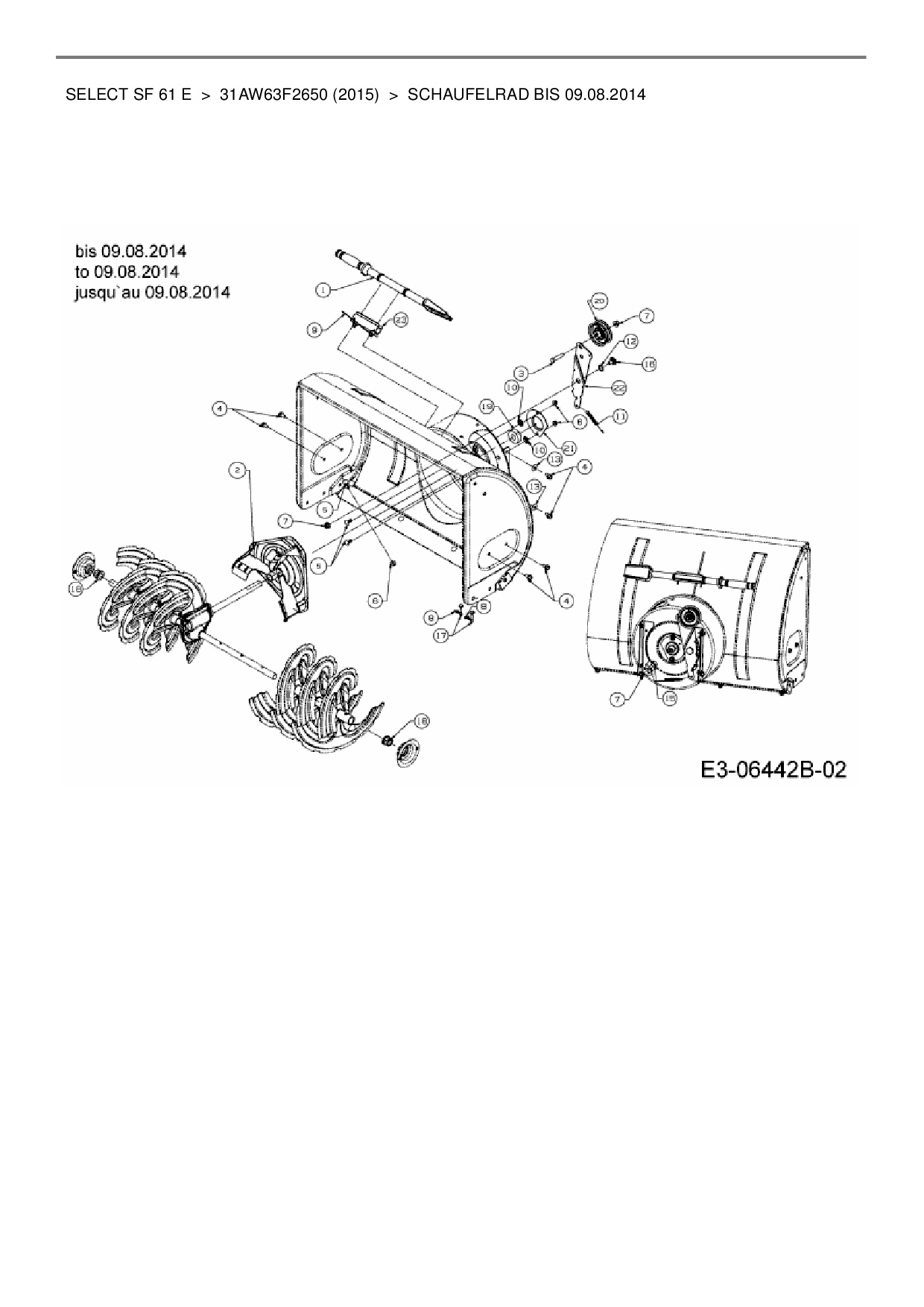 Ersatzteile für Schneefräse Wolf-Garten Select SF 61 E aus der Zeichnung Schaufelrad bis 09.08.2014: