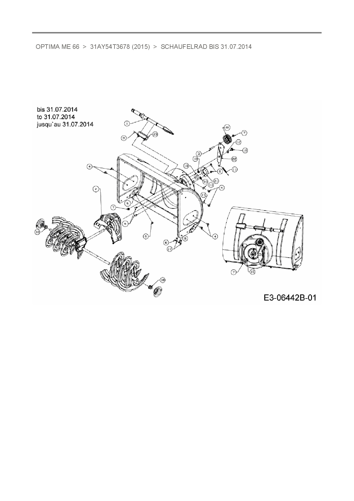 Ersatzteile für Schneefräse MTD Optima ME 66 aus der Zeichnung Schaufelrad bis 31.07.2014: