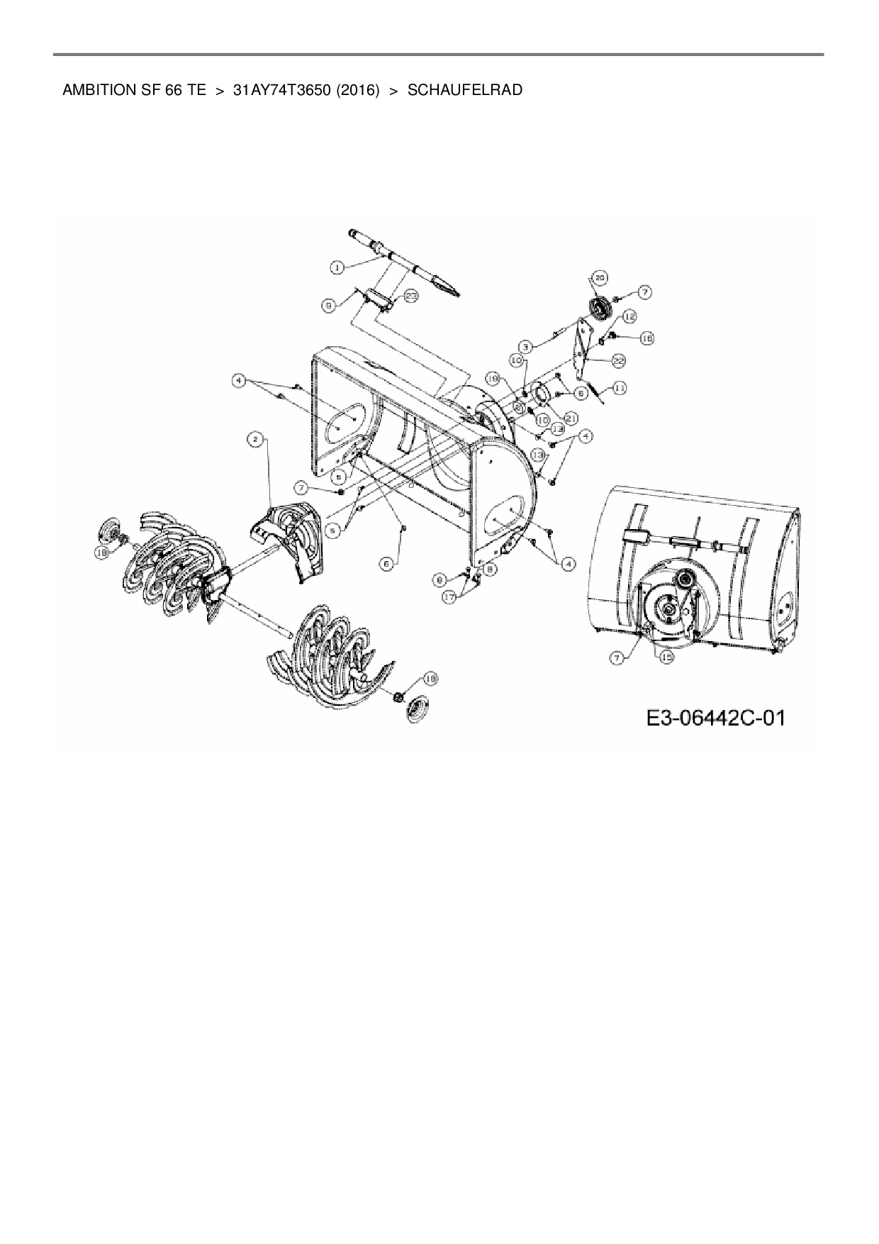 Ersatzteile für Schneefräse Wolf-Garten Ambition SF 66 TE aus der Zeichnung Schaufelrad: