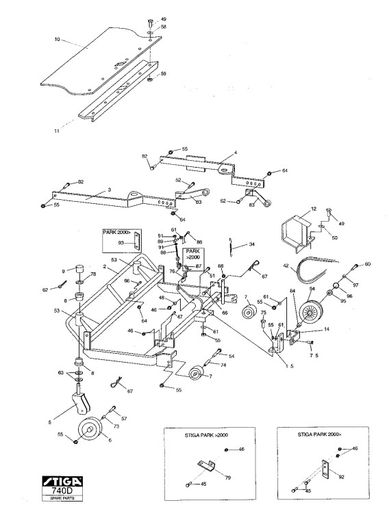 Zeichnungen von Stiga Frontaufsitzmäher MOSSRIVARE PARK mit Geräte Nr. 13-1984-13 ab Baujahr 2003