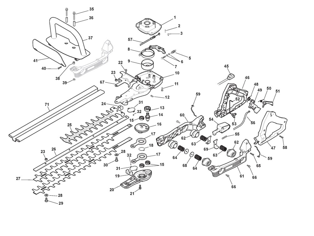 Zeichnungen von Alpina Heckenscheren HTM 60 mit Geräte Nr. 251460000/09 ab Baujahr 2012