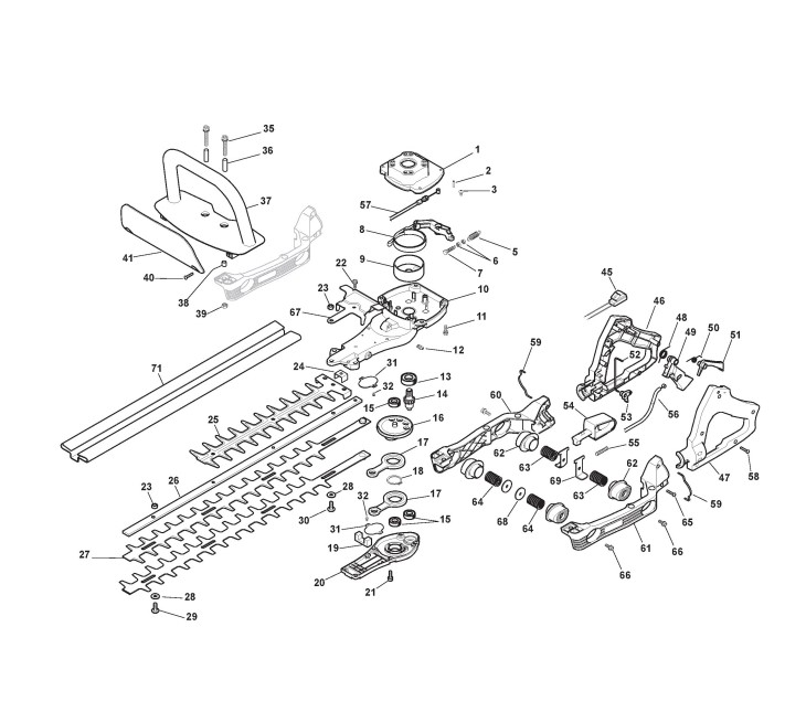 Hier finden Sie alle Ersatzteile von Castelgarden Benzin Heckenschere XHM 60 (251460003/09) ab 2011 aus der Zeichnung Schneideeinheit (2):