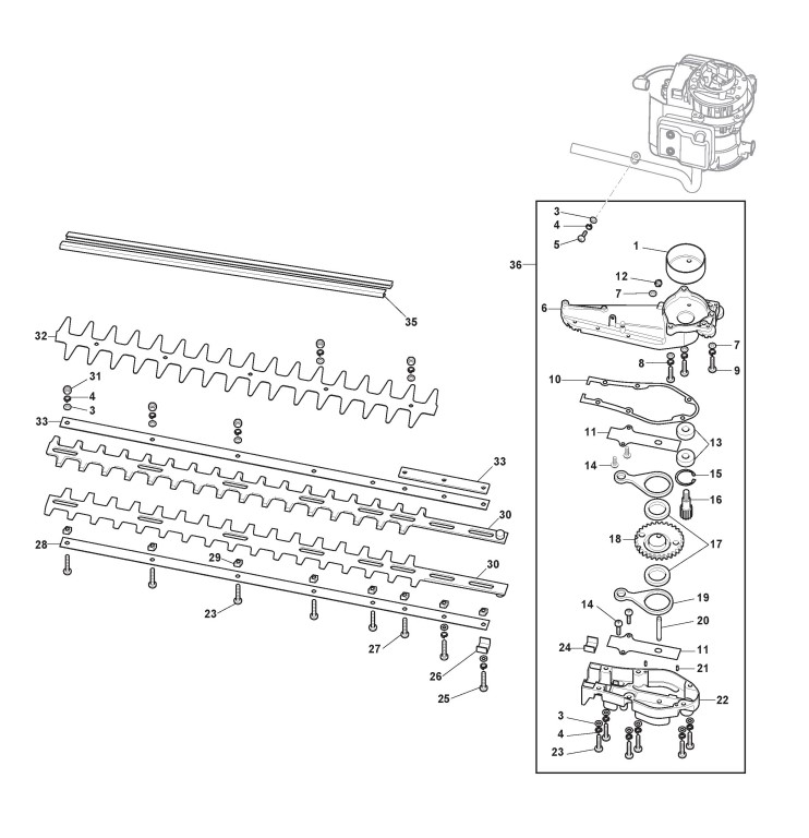 Zeichnungen von Alpina Heckenscheren HTJ 550 mit Geräte Nr. 252900001/10 ab Baujahr 2011