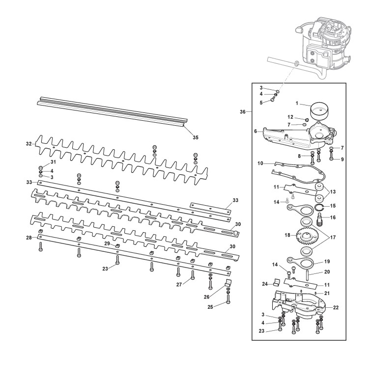 Zeichnungen von Alpina Heckenscheren HTJ 550 mit Geräte Nr. 252900000/10 ab Baujahr 2013