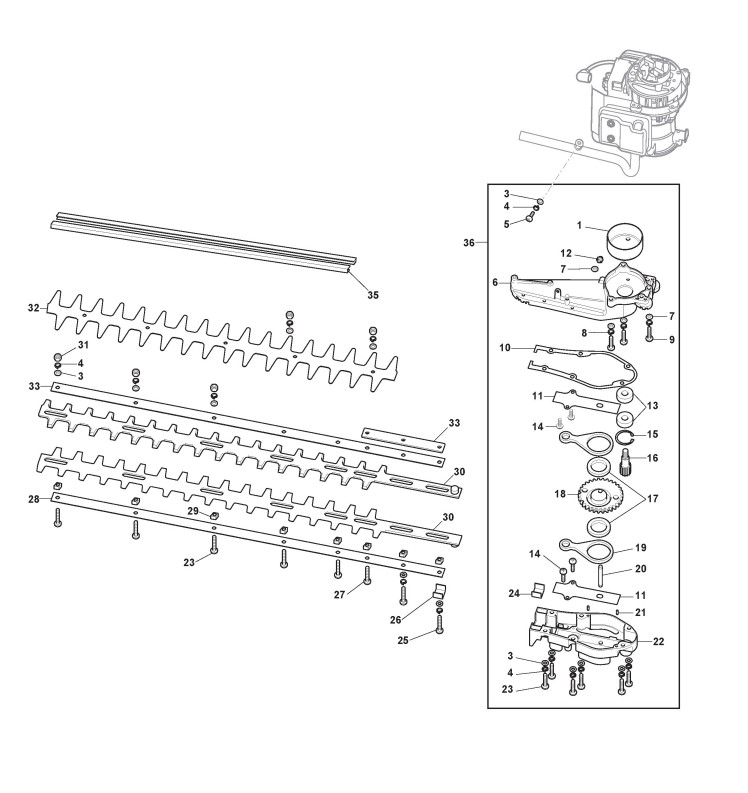 Zeichnungen von Alpina Heckenscheren HTJ 550 mit Geräte Nr. 252900000/10 ab Baujahr 2014
