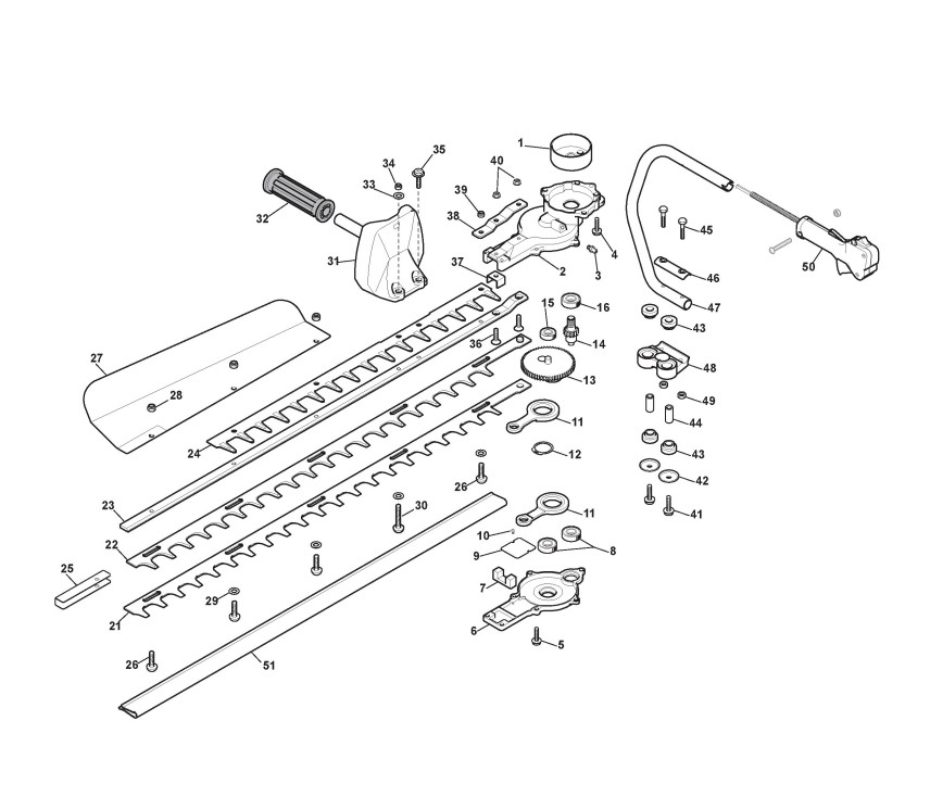 Zeichnungen von Alpina Heckenscheren HTM 75 mit Geräte Nr. 251475000/09 ab Baujahr 2012