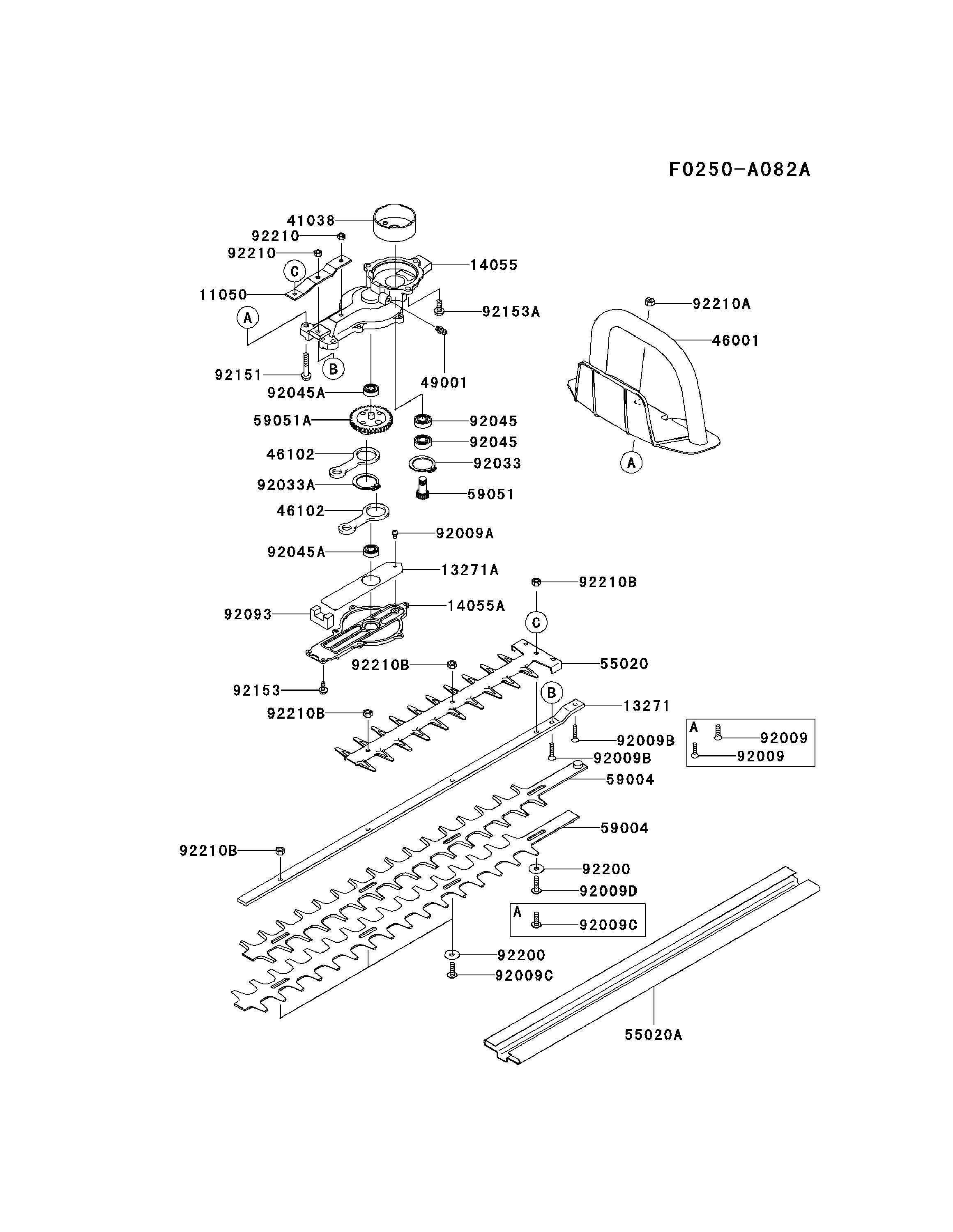 Hier finden Sie alle Ersatzteile von Kawasaki Heckenschere HB600E-AS00 (KHT600SC) aus der Zeichnung Schneidegehäuse: