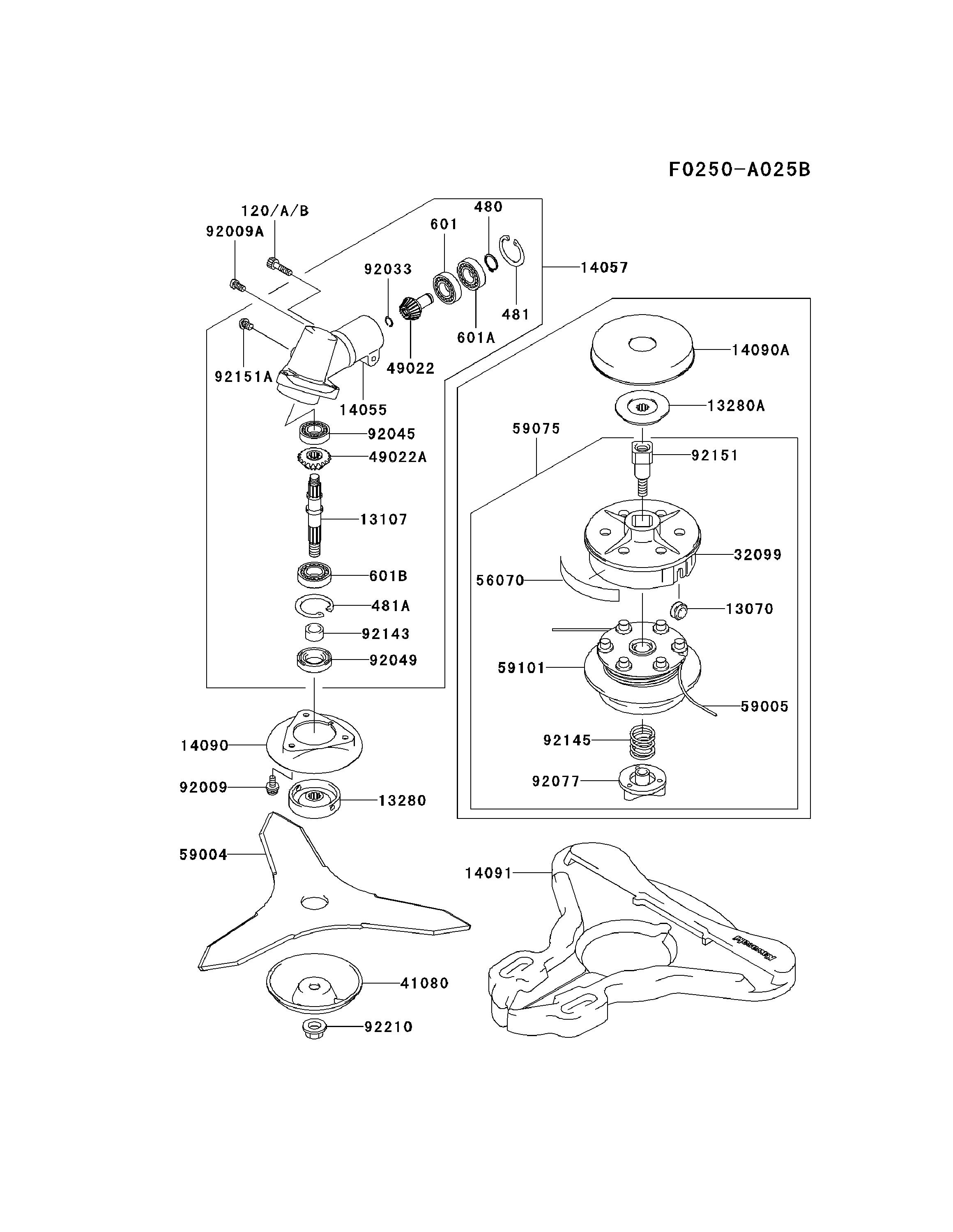 Zeichnung von Kawasaki Freischneider HA043F-AS52 (KBH43A):