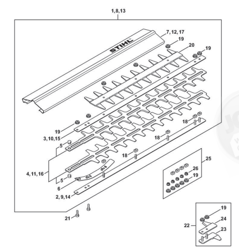 Hier finden Sie alle Ersatzteile von Stihl Heckenscheren HS 80 der Zeichnungsgruppe Schneideinrichtung: