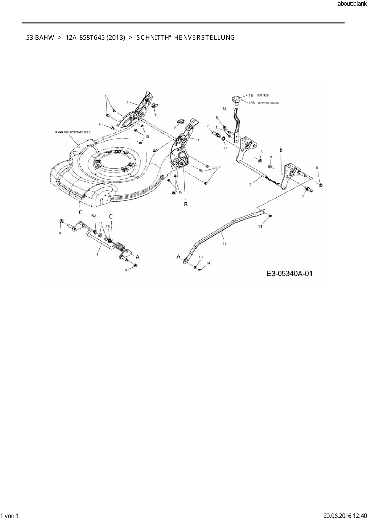 Ersatzteile für Motormäher mit Antrieb E-FLOR 53 BAHW aus der Zeichnung Schnitthöhenverstellung: