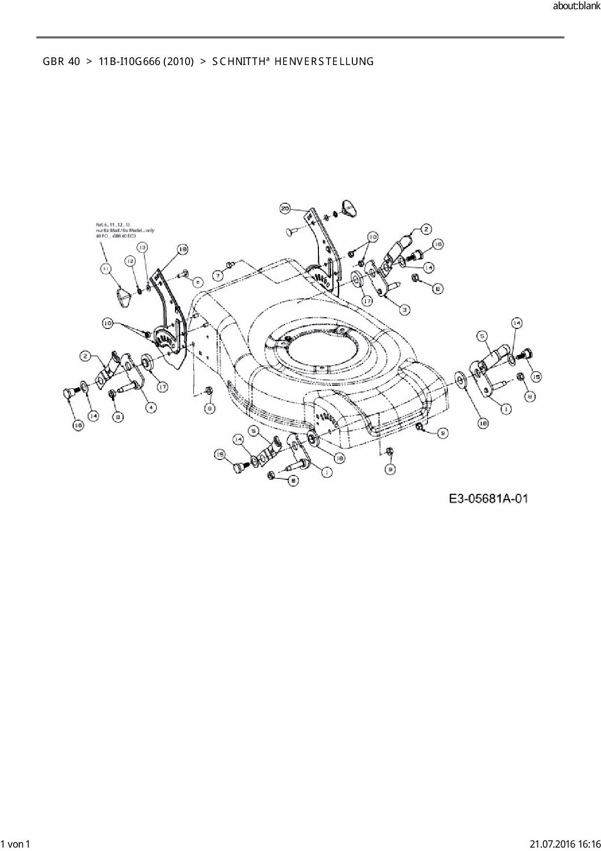 Ersatzteile für Motormäher Garda GBR 40 aus der Zeichnung Schnitthöhenverstellung:
