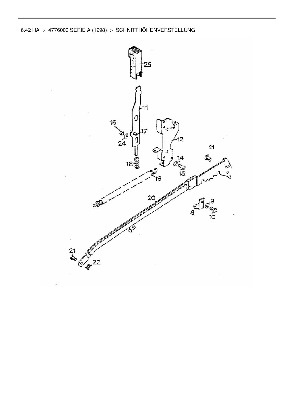 Ersatzteile für Motormäher mit Antrieb Wolf-Garten 6.42 HA aus der Zeichnung Schnitthöhenverstellung: