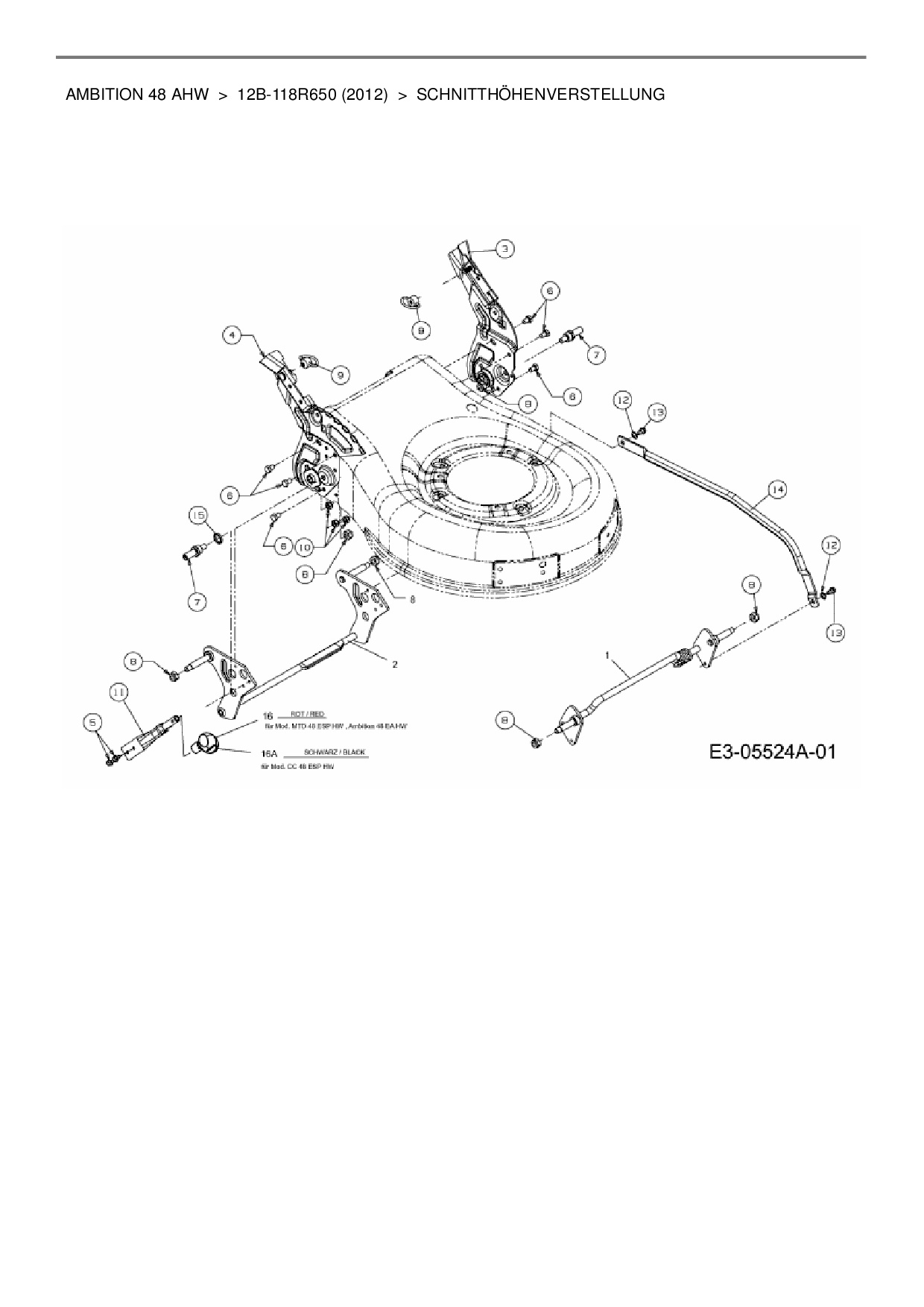 Ersatzteile für Motormäher mit Antrieb Wolf-Garten Ambition 48 AHW aus der Zeichnung Schnitthöhenverstellung: