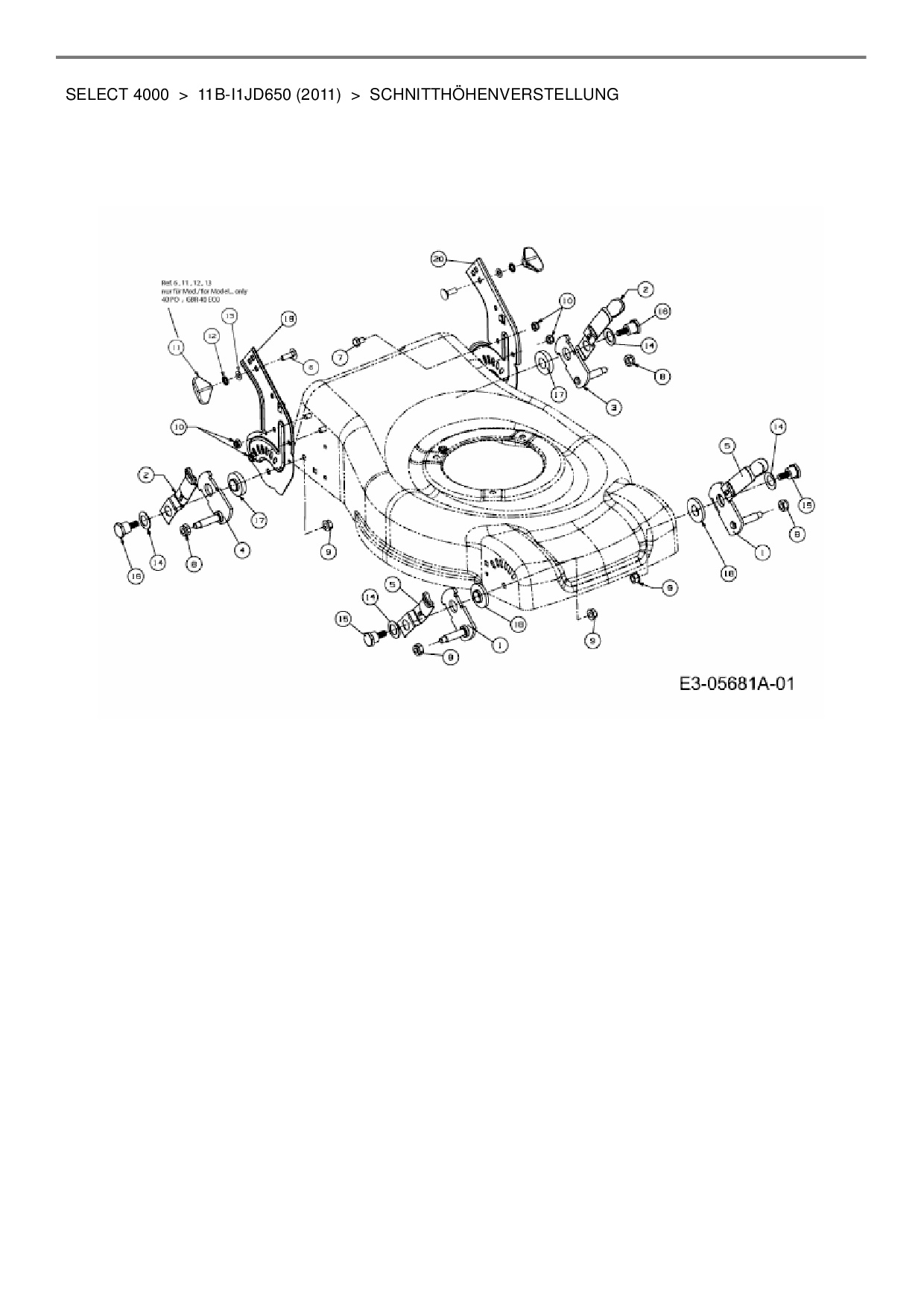 Ersatzteile für Motormäher Wolf-Garten Select 4000 aus der Zeichnung Schnitthöhenverstellung: