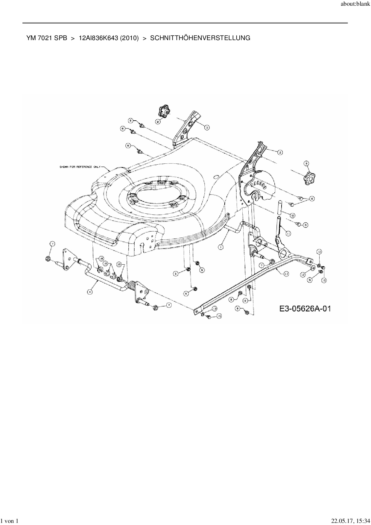 Ersatzteile für Motormäher mit Antrieb Yard-Man YM 7021 SPB aus der Zeichnung Schnitthöhenverstellung: