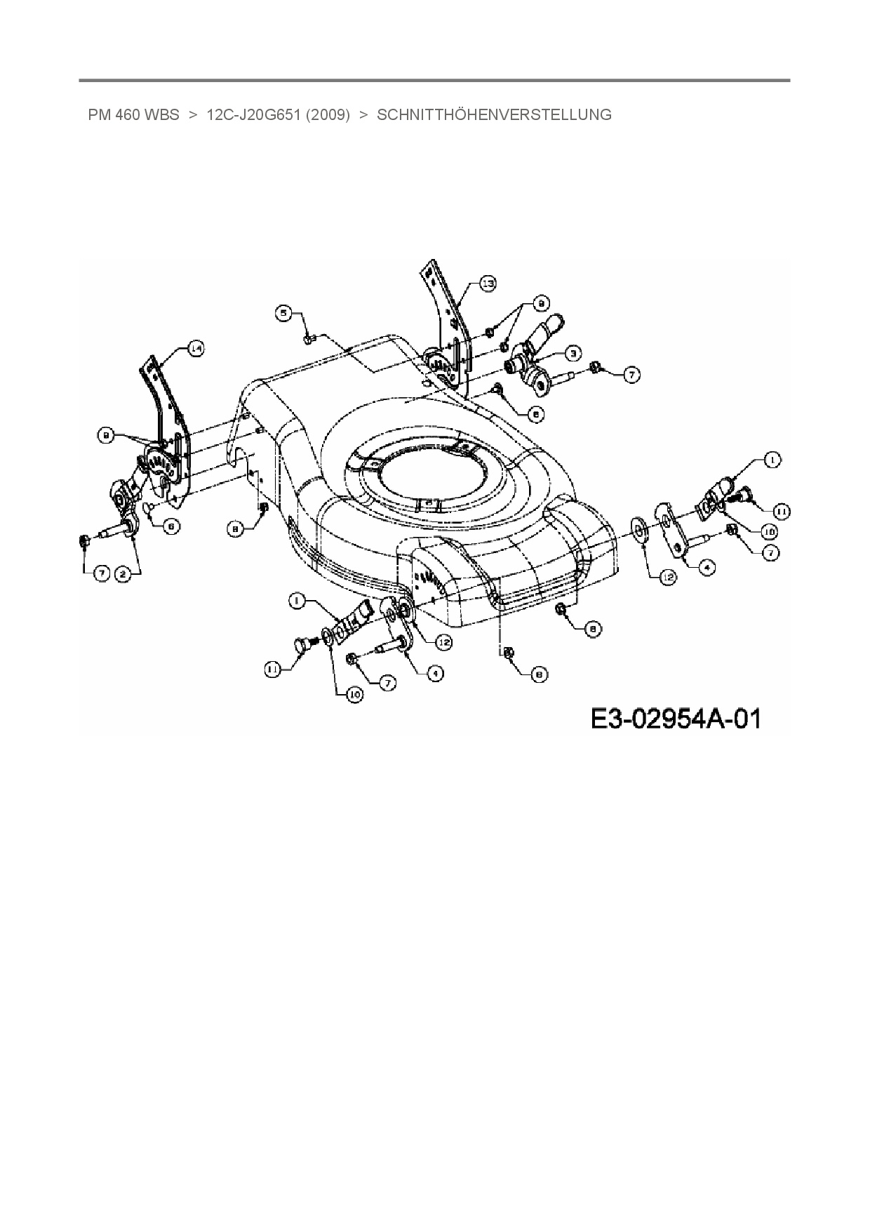 Ersatzteile für Motormäher mit Antrieb Terradena PM 460 WBS aus der Zeichnung Schnitthöhenverstellung: