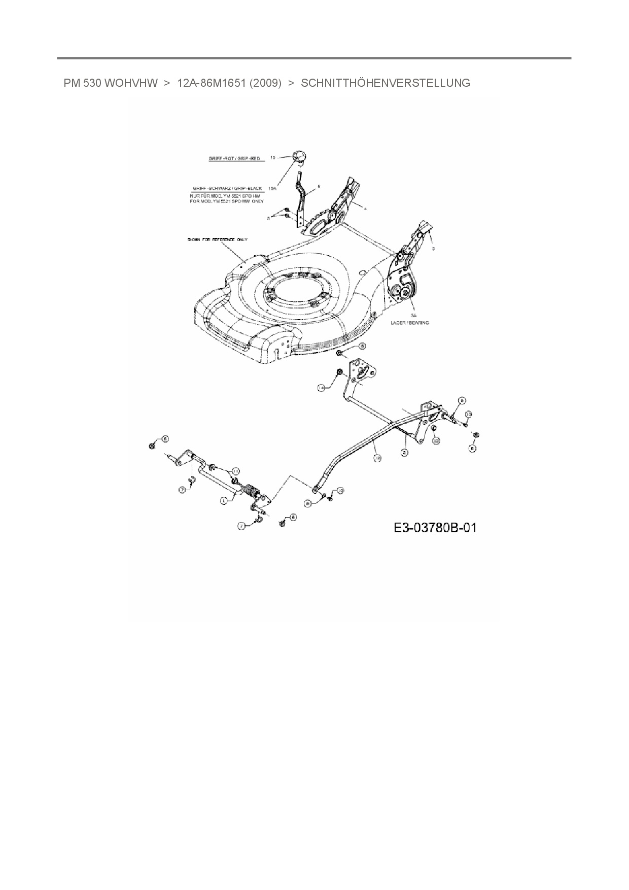 Ersatzteile für Motormäher mit Antrieb Terradena PM 530 WOHVHW aus der Zeichnung Schnitthöhenverstellung: