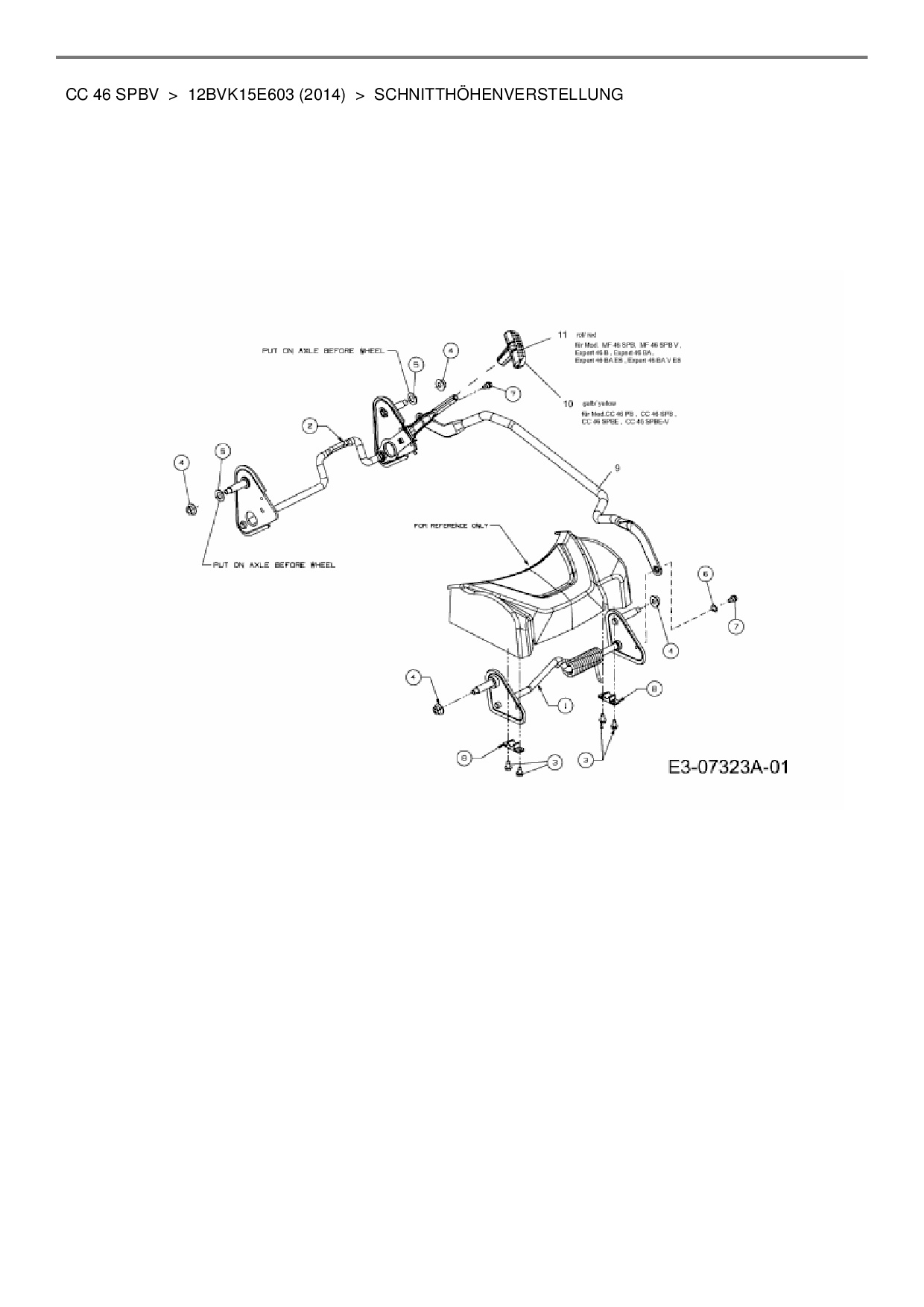 Ersatzteile für Motormäher mit Antrieb Cub Cadet CC 46 SPBV aus der Zeichnung Schnitthöhenverstellung: