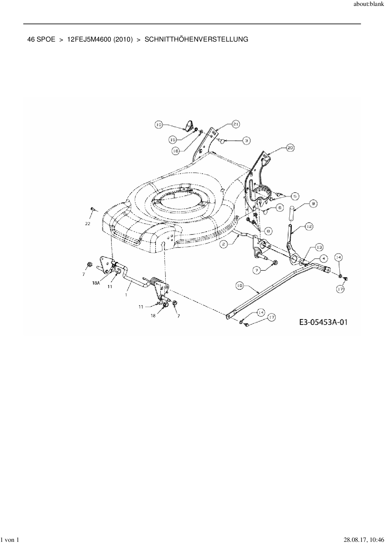 Ersatzteile für Motormäher mit Antrieb MTD 46 SPOE aus der Zeichnung Schnitthöhenverstellung: