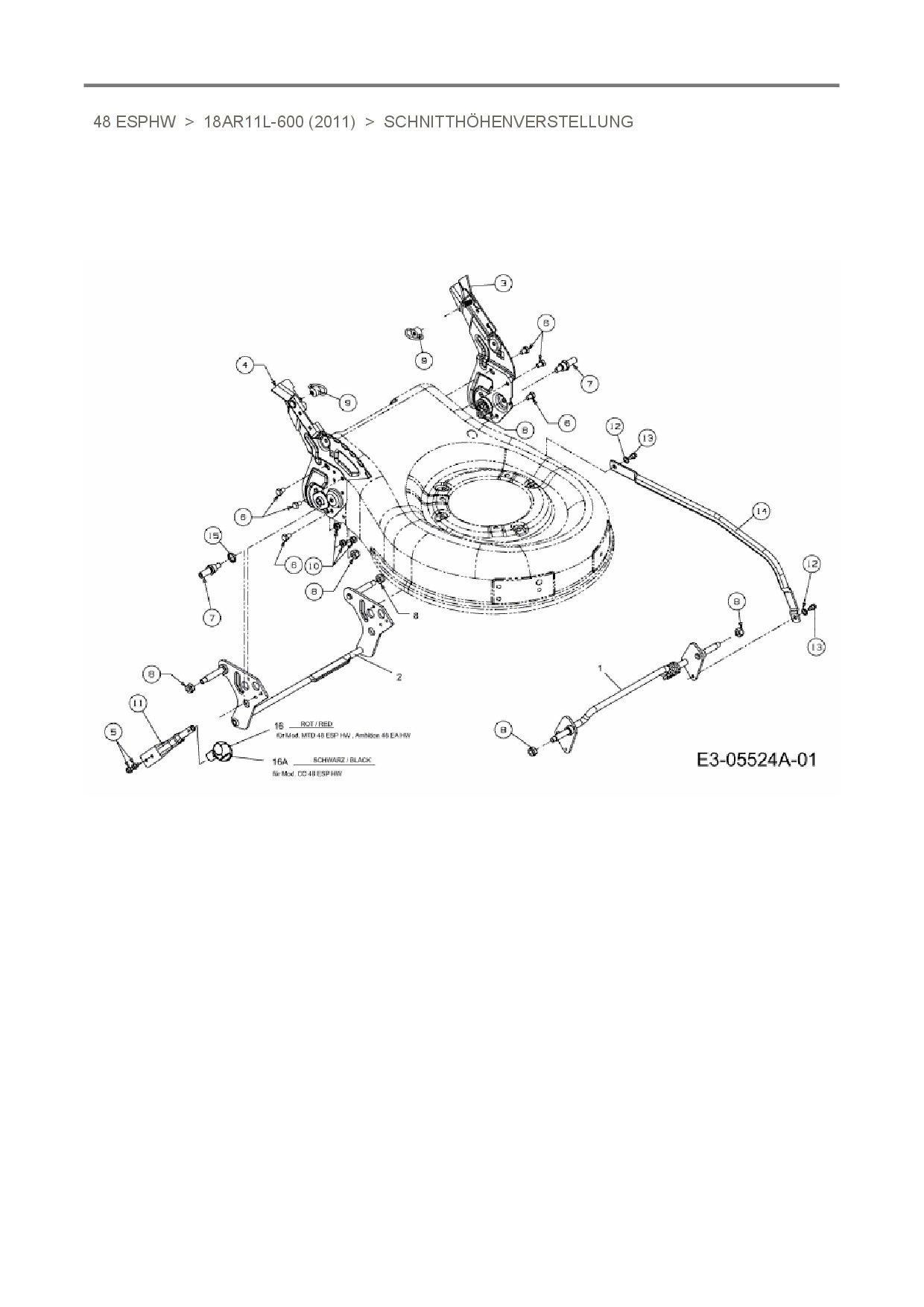Ersatzteile für Elektromäher mit Antrieb MTD 48 ESPHW aus der Zeichnung Schnitthöhenverstellung: