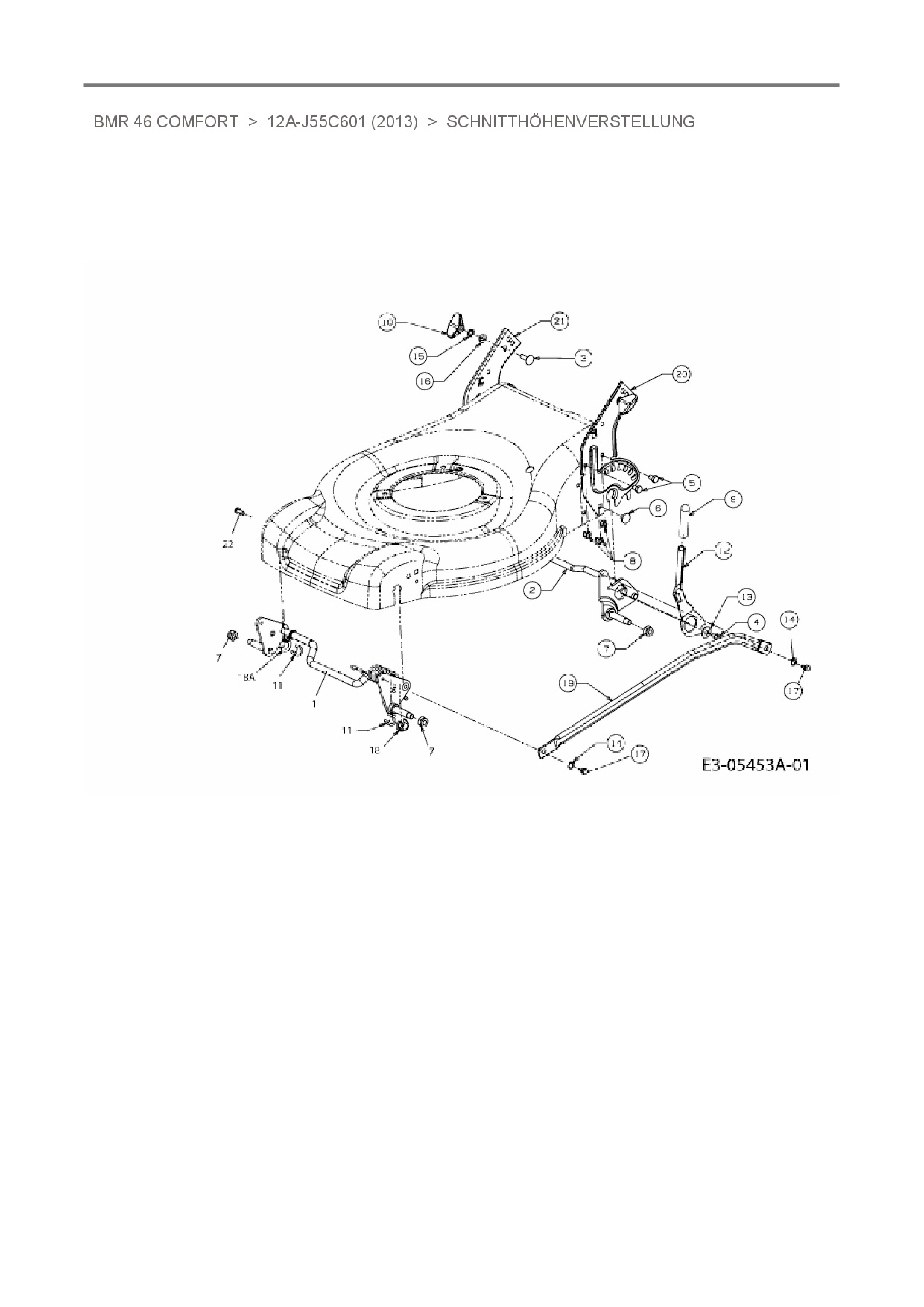 Ersatzteile für Motormäher mit Antrieb Plantiflor BMR 46 Comfort aus der Zeichnung Schnitthöhenverstellung: