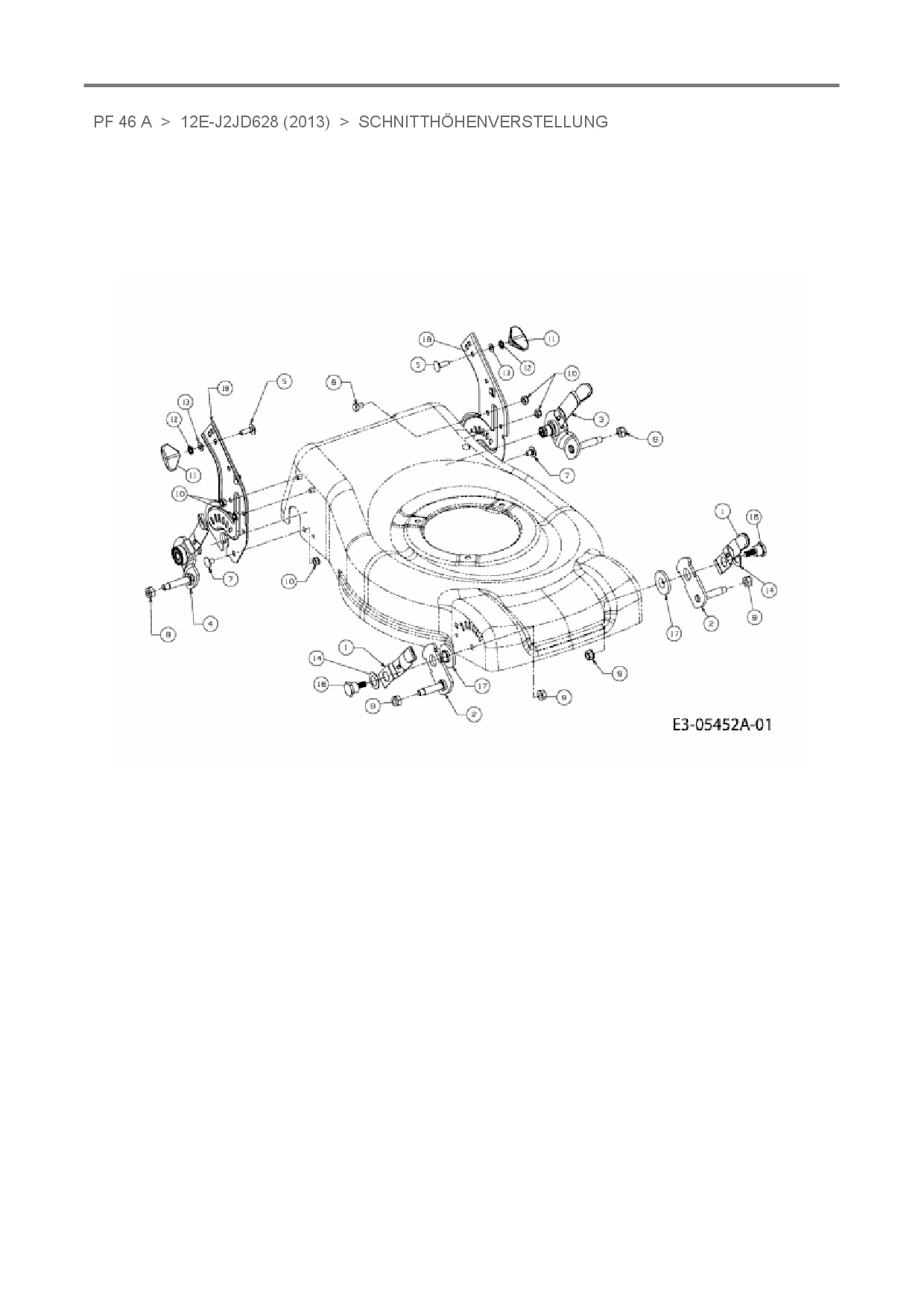 Ersatzteile für Motormäher mit Antrieb Preisfuxx PF 46 A aus der Zeichnung Schnitthöhenverstellung: