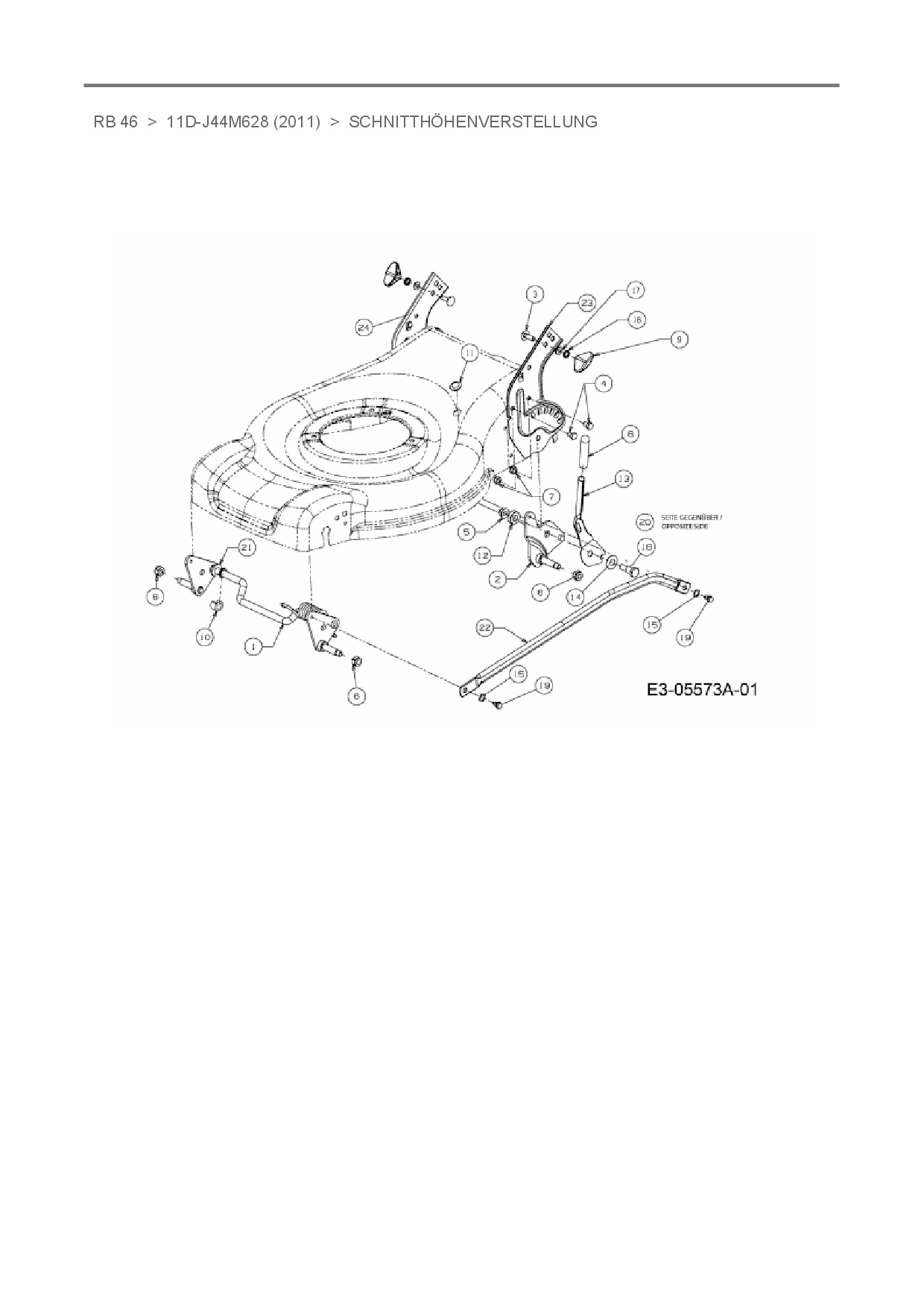 Ersatzteile für Motormäher Raiffeisen-Markt RB 46 aus der Zeichnung Schnitthöhenverstellung:
