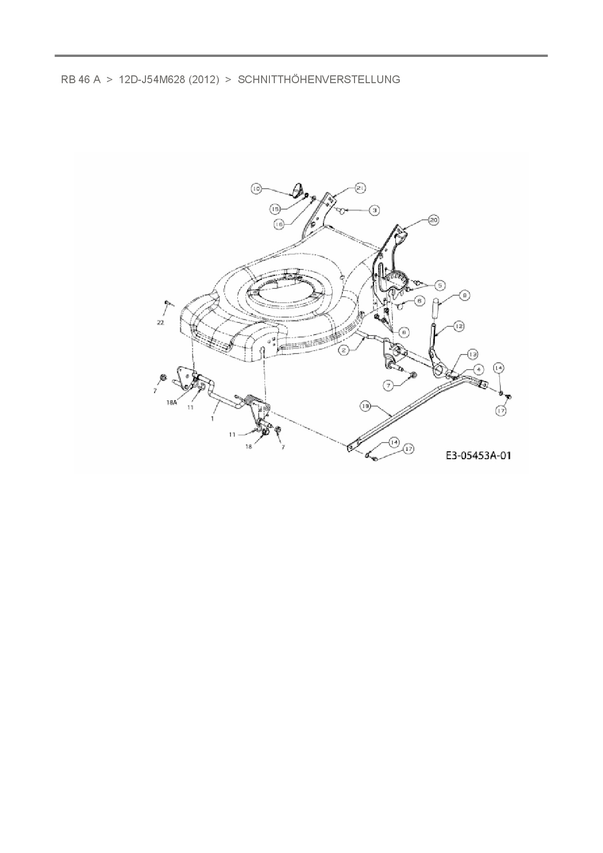 Ersatzteile für Motormäher mit Antrieb Raiffeisen-Markt RB 46 A aus der Zeichnung Schnitthöhenverstellung: