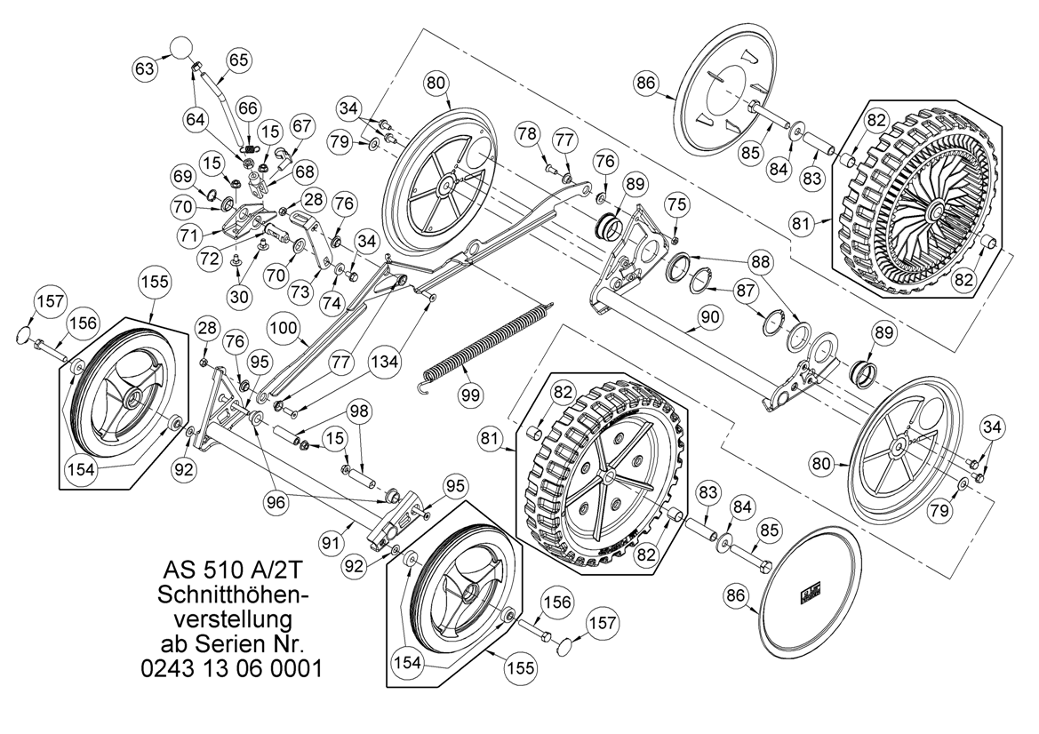 Hier finden Sie alle Ersatzteile von AS-Motor Mulch-Rasenmäher AS 510 2T A und AS 510 A/2T ProClip ab FNr. 024313060001 aus dem Zeichnungsblatt Schnitthöhenverstellung: