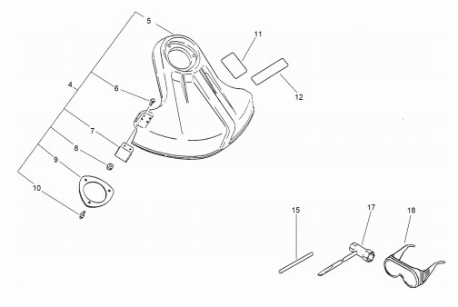 Zeichnung von ECHO Kombisystem PAS-2400 Trimmer SBSRM-SRM Schutz, Zubehör: