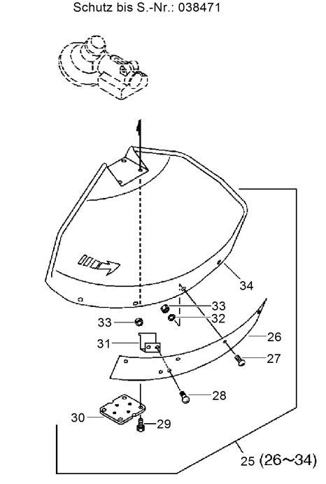 Zeichnung von ECHO Motorsensen SRM-2455U Schutz bis S.-Nr.: 038471: