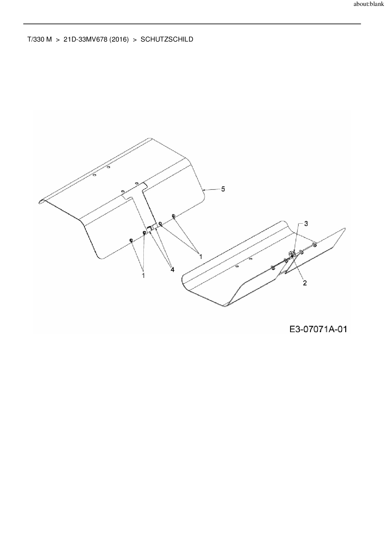 Ersatzteile für Motorhacke MTD T/330 M aus der Zeichnung Schutzschild: