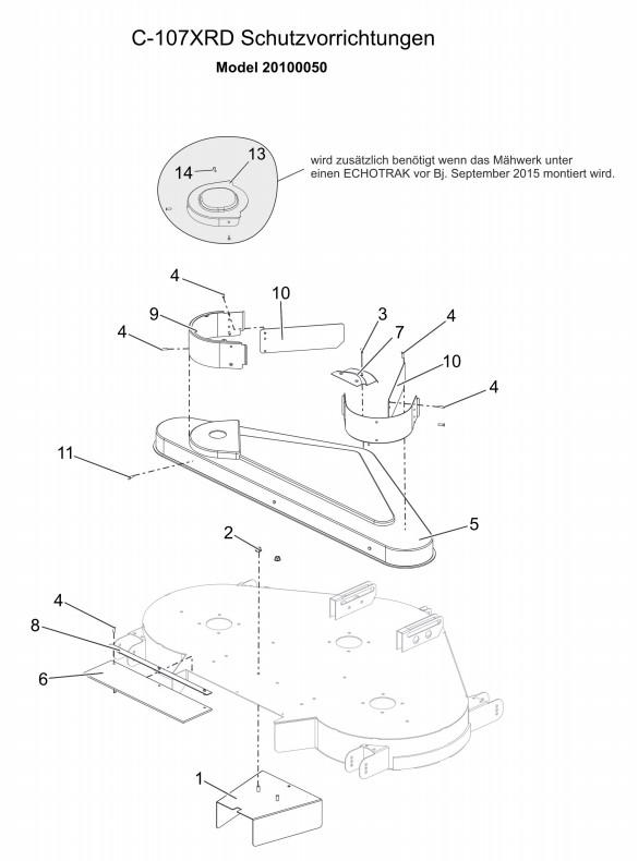 Zeichnung von Ariens Rasentraktoren Mähwerke C-107_XRD C-107XRD Schutzvorrichtungen: