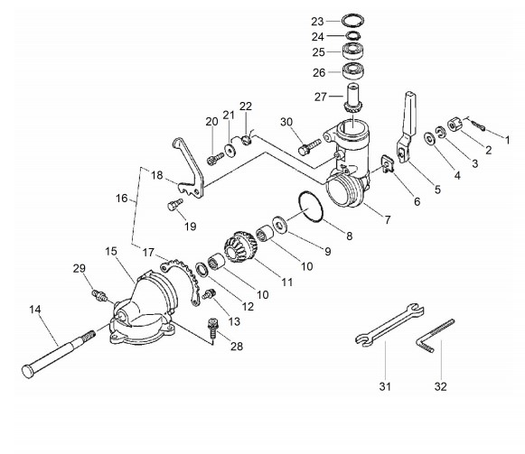 Zeichnung von ECHO Kombisystem PAS-2400 Heckenschere HCAA-2401 Schwenkgetriebe: