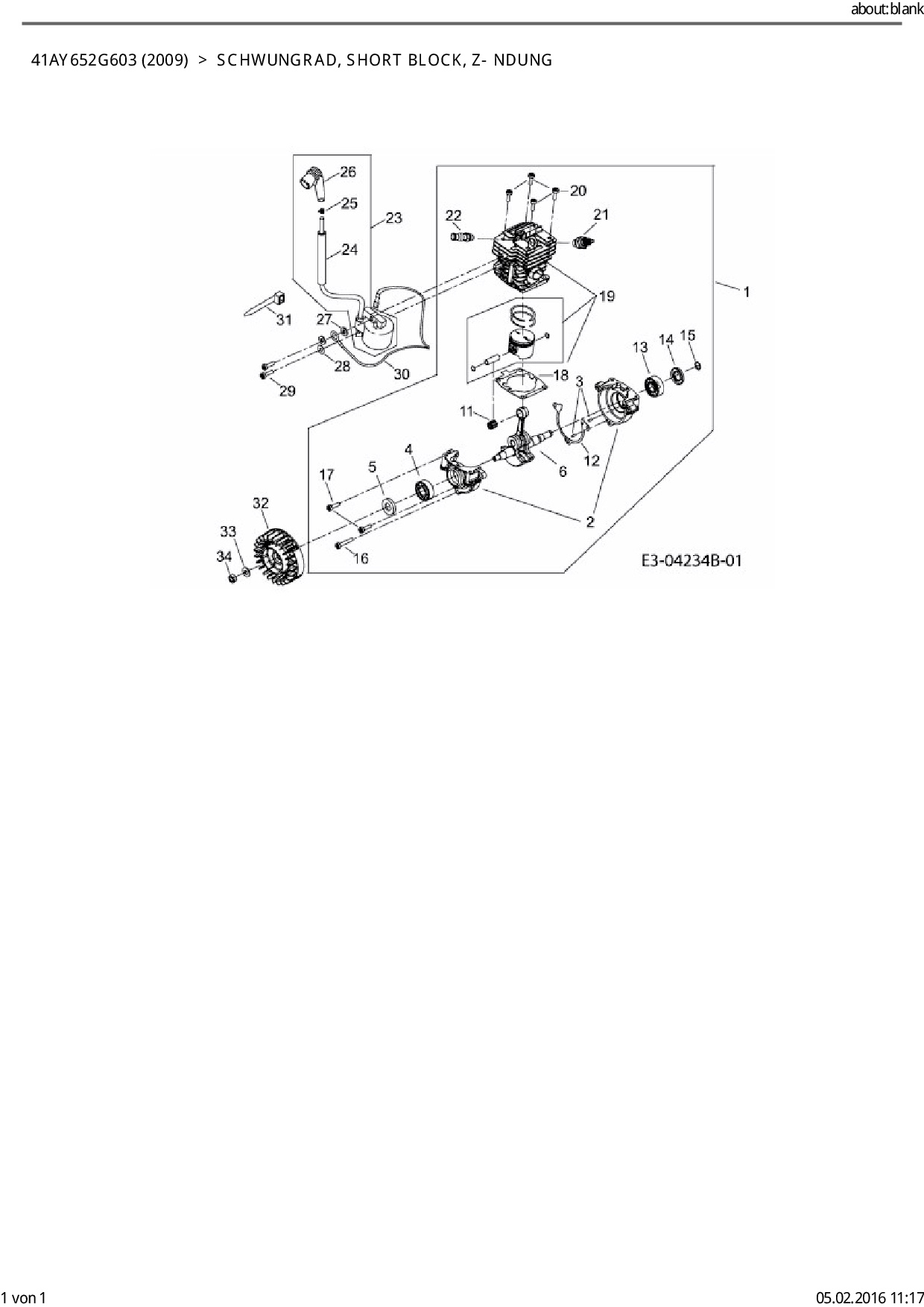 Download Ersatzteil-Zeichnung Cub Cadet CC 3352 Zeichnung Schwungrad, Short Block, Zündung (PDF-Format)