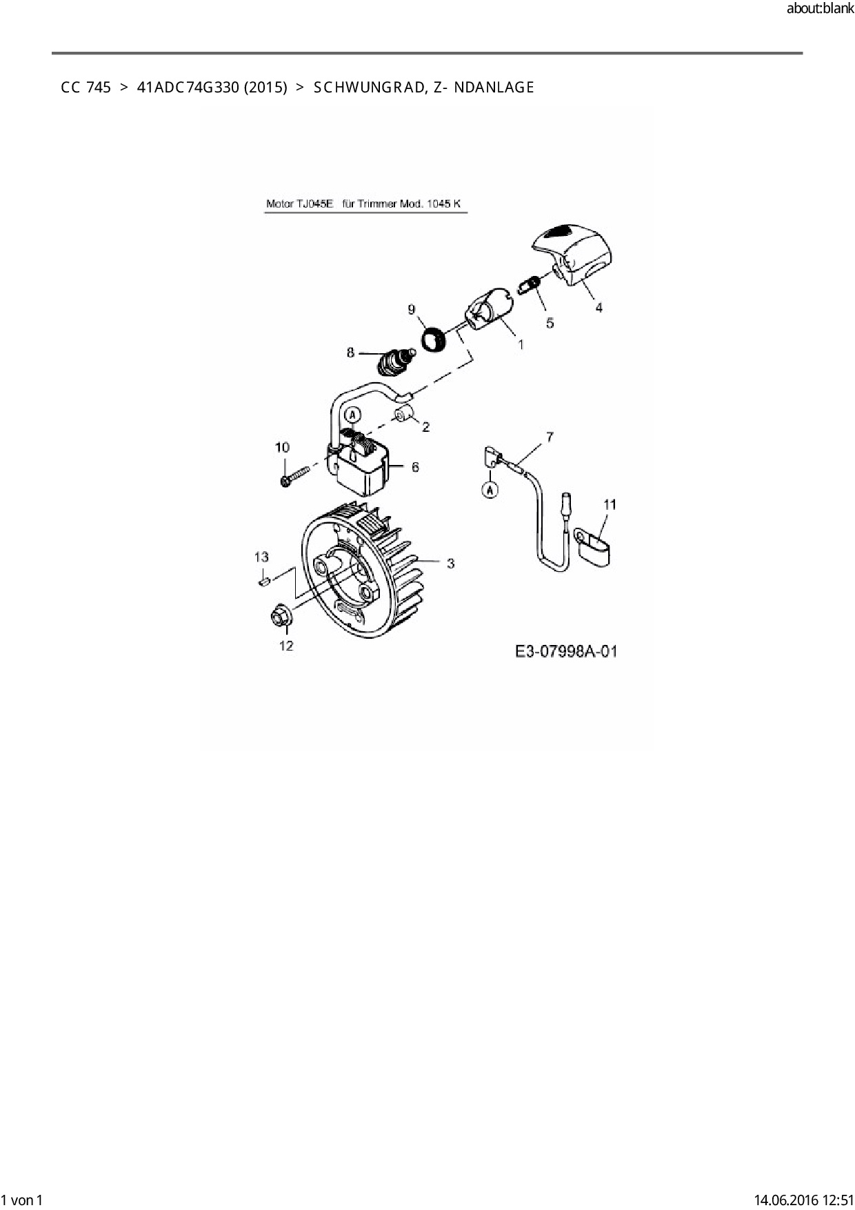 Ersatzteile für Motorsense Cub Cadet CC 745 aus der Zeichnung Schwungrad, Zündanlage: