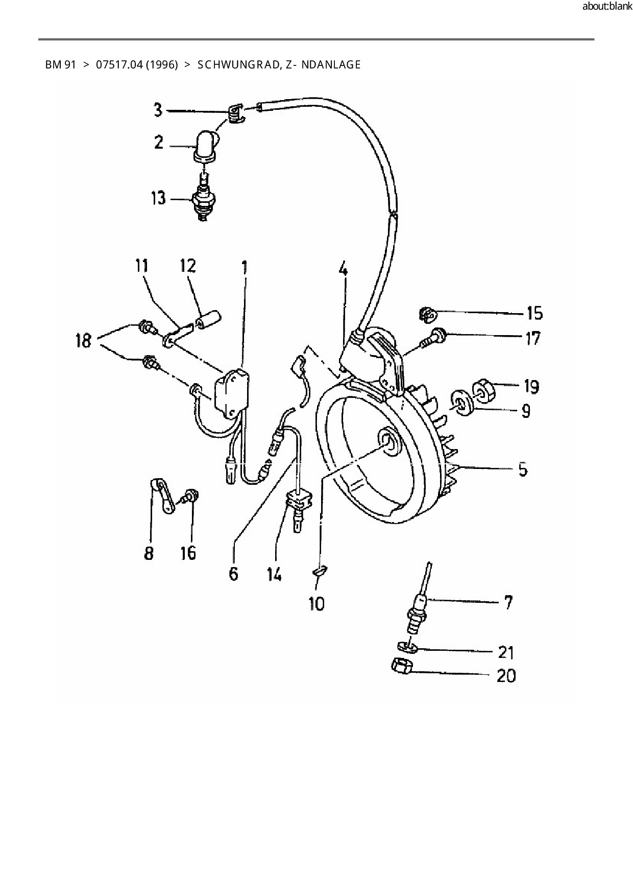 Ersatzteile für Balkenmäher Gutbrod BM 91 aus der Zeichnung Schwungrad, Zündanlage: