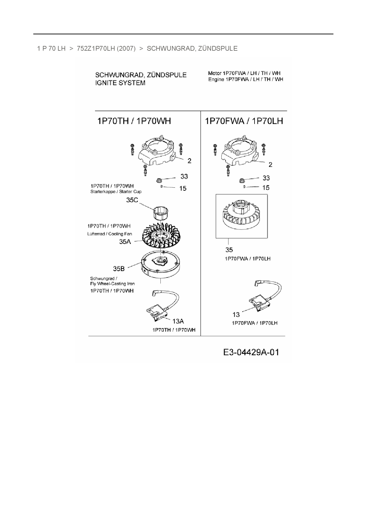 Ersatzteile für Vertikal MTD-Motoren 1 P 70 LH aus der Zeichnung Schwungrad, Zündspule: