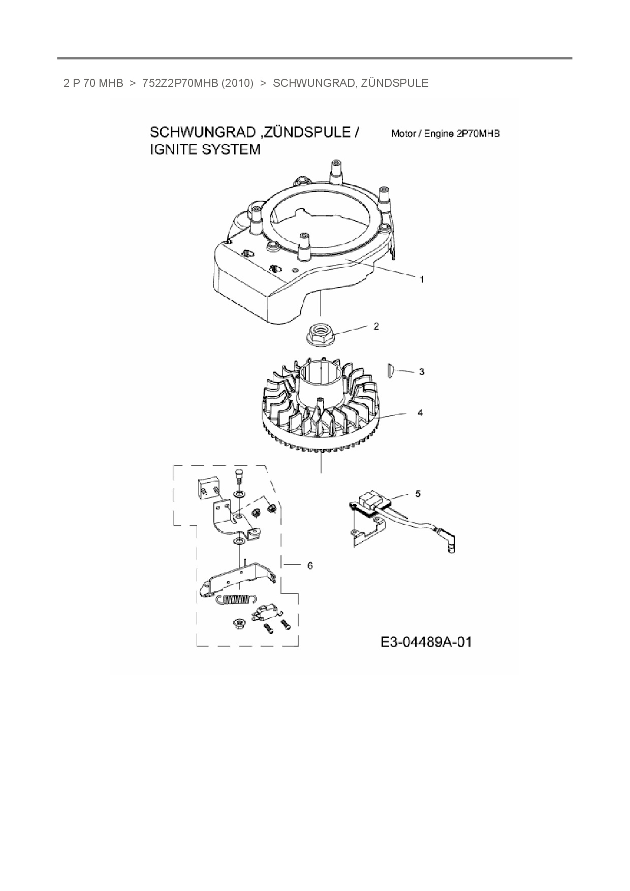 Ersatzteile für Vertikal MTD-Motoren 2 P 70 MHB aus der Zeichnung Schwungrad, Zündspule: