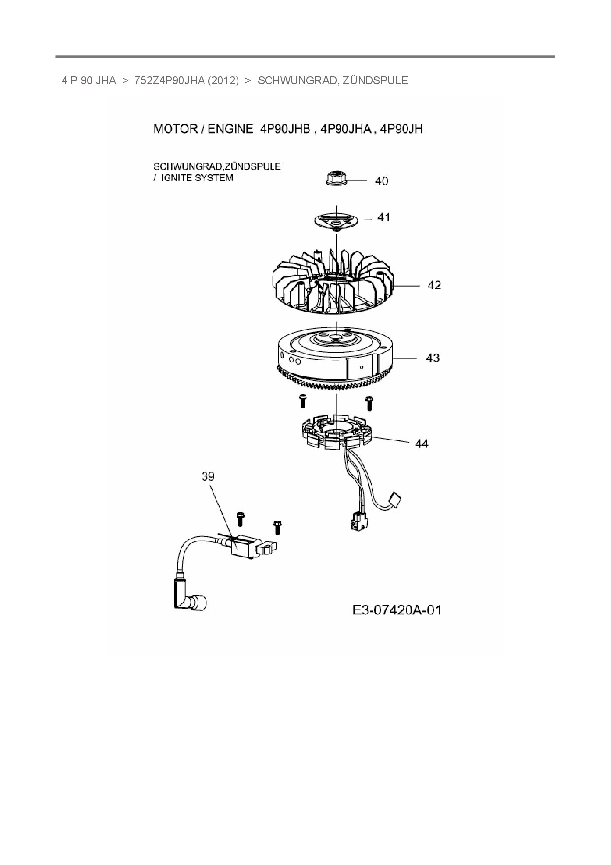 Ersatzteile für Vertikal MTD-Motoren 4 P 90 JHA aus der Zeichnung Schwungrad, Zündspule: