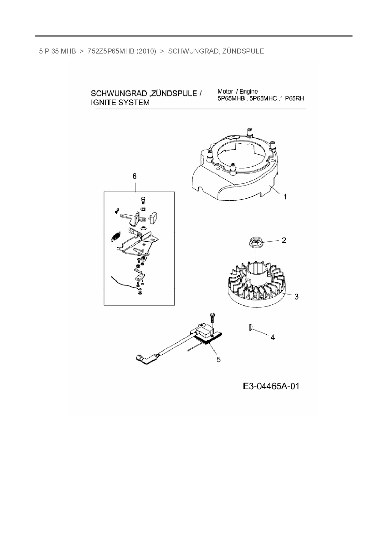 Ersatzteile für Vertikal MTD-Motoren 5 P 65 MHB aus der Zeichnung Schwungrad, Zündspule:
