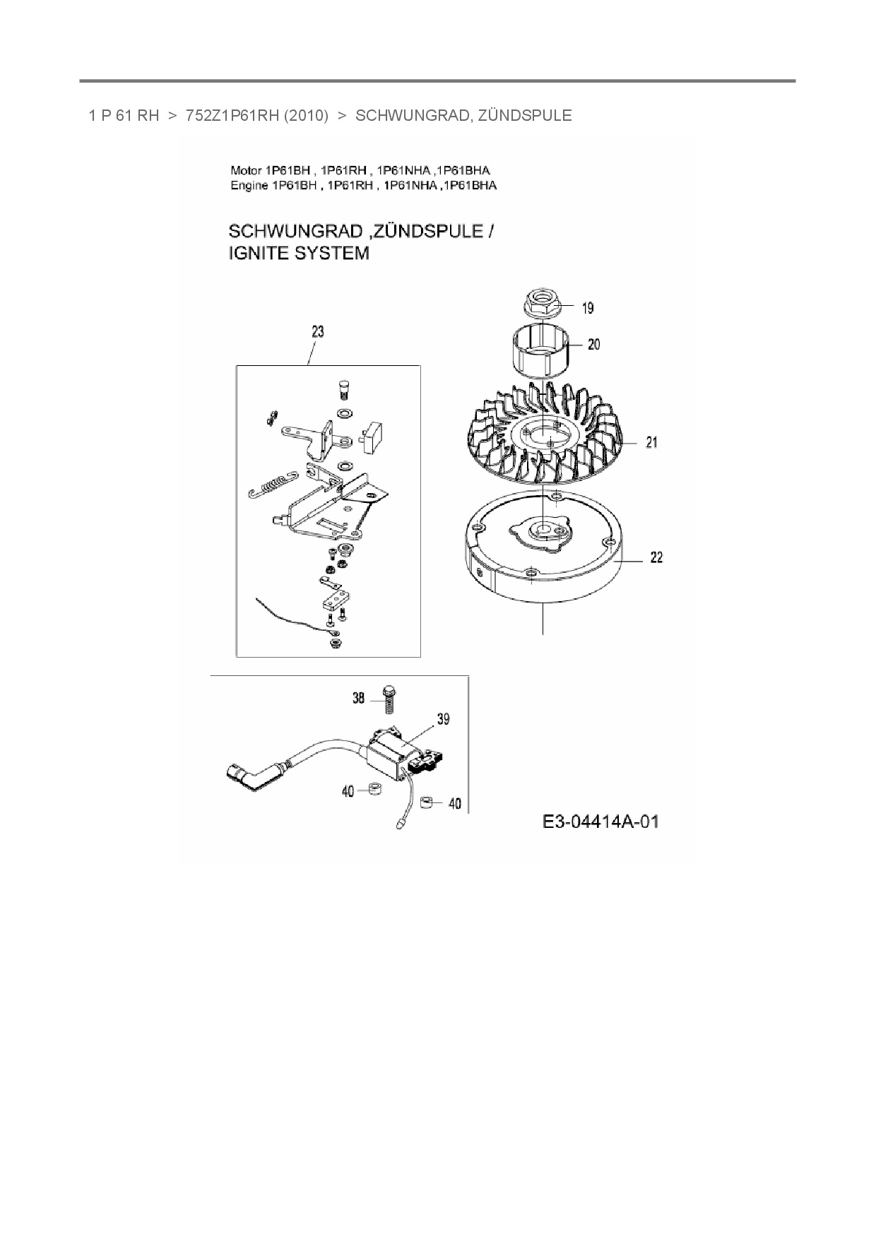 Ersatzteile für Vertikal MTD-Motoren 1 P 61 RH aus der Zeichnung Schwungrad, Zündspule: