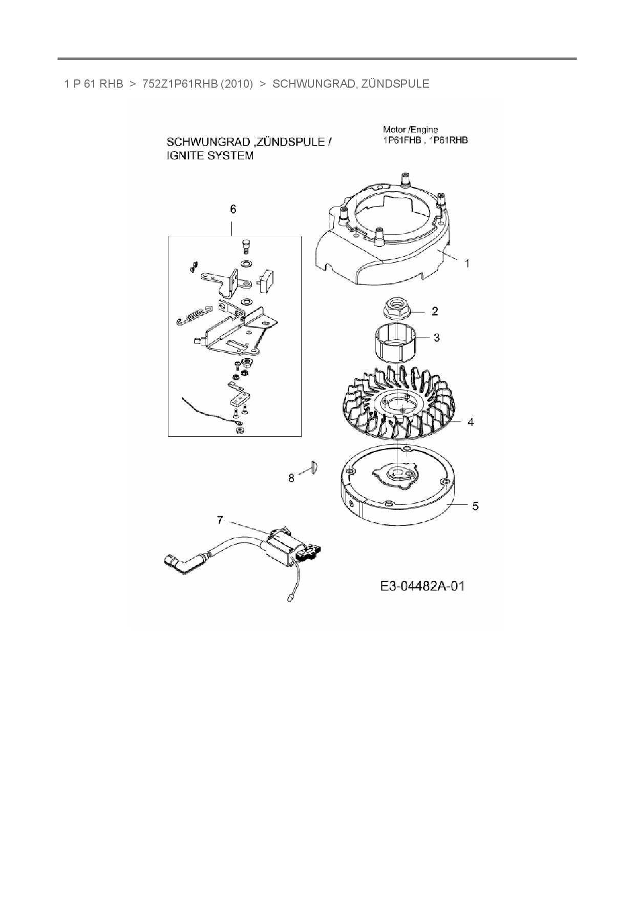 Ersatzteile für Vertikal MTD-Motoren 1 P 61 RHB aus der Zeichnung Schwungrad, Zündspule: