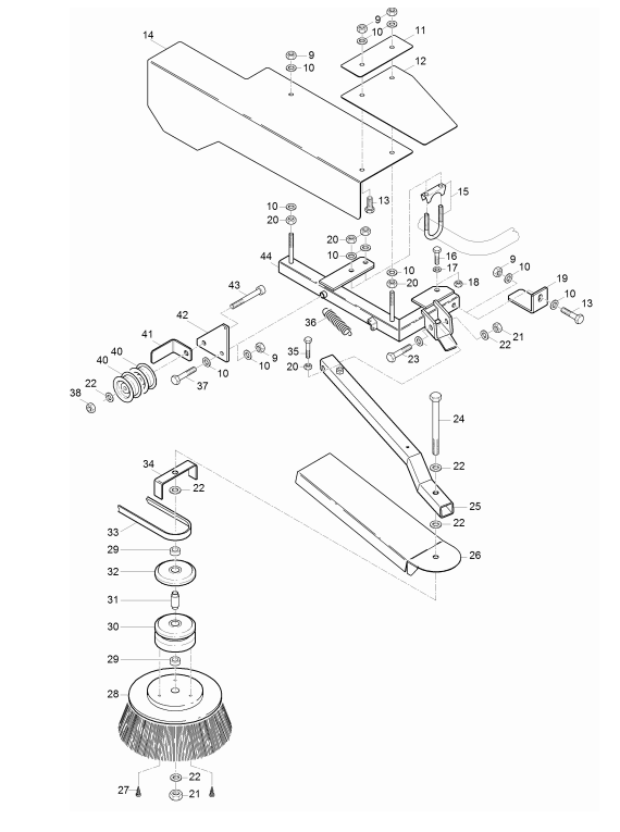 Zeichnung von Erco Laub- und Abfallsauger ES-400er Serie ES-400HOPRO-03 Seitenbesen rechts: