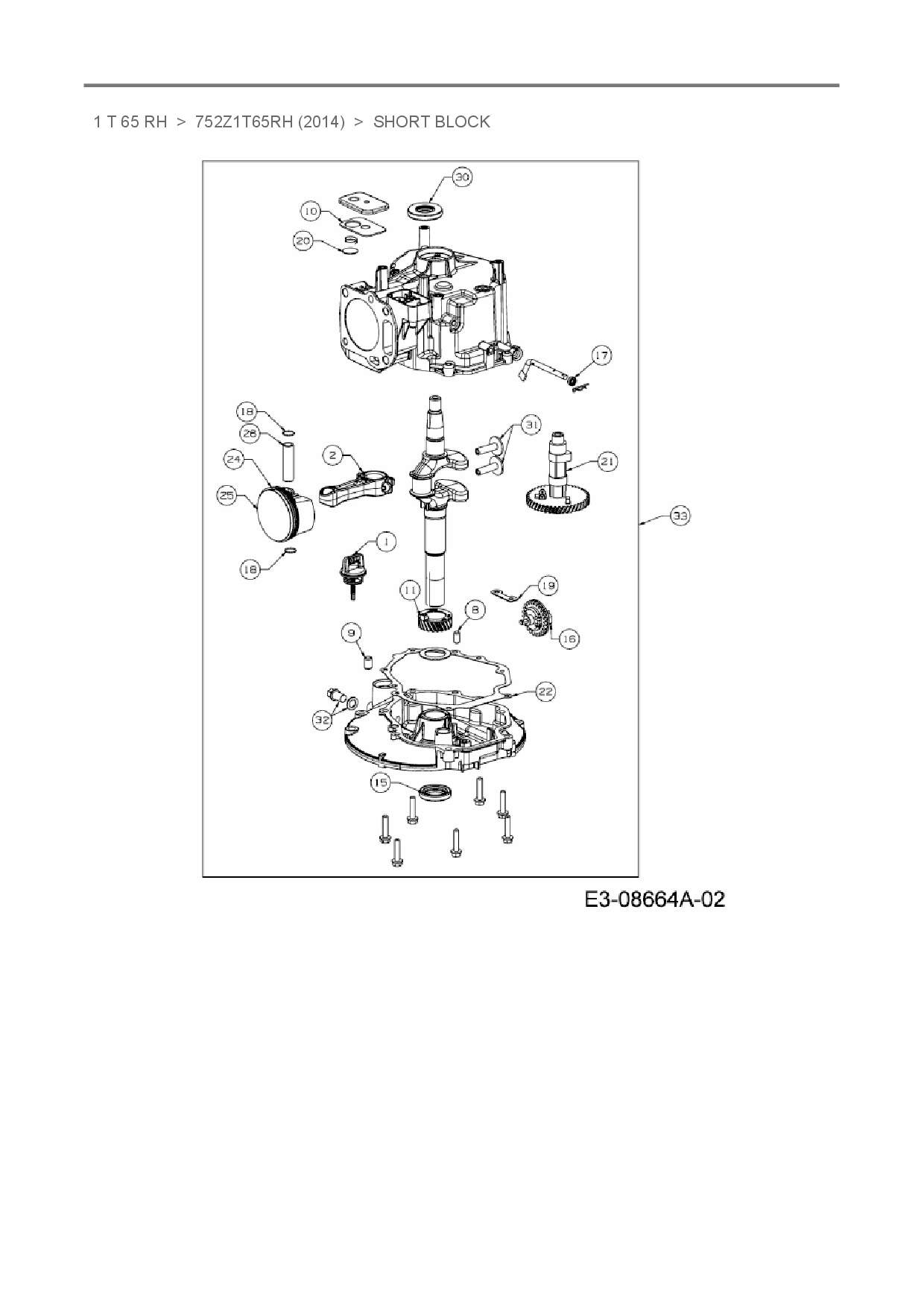 Download Ersatzteil-Zeichnung MTD-Motoren 1 T 65 RH Zeichnung Short Block (PDF-Format)