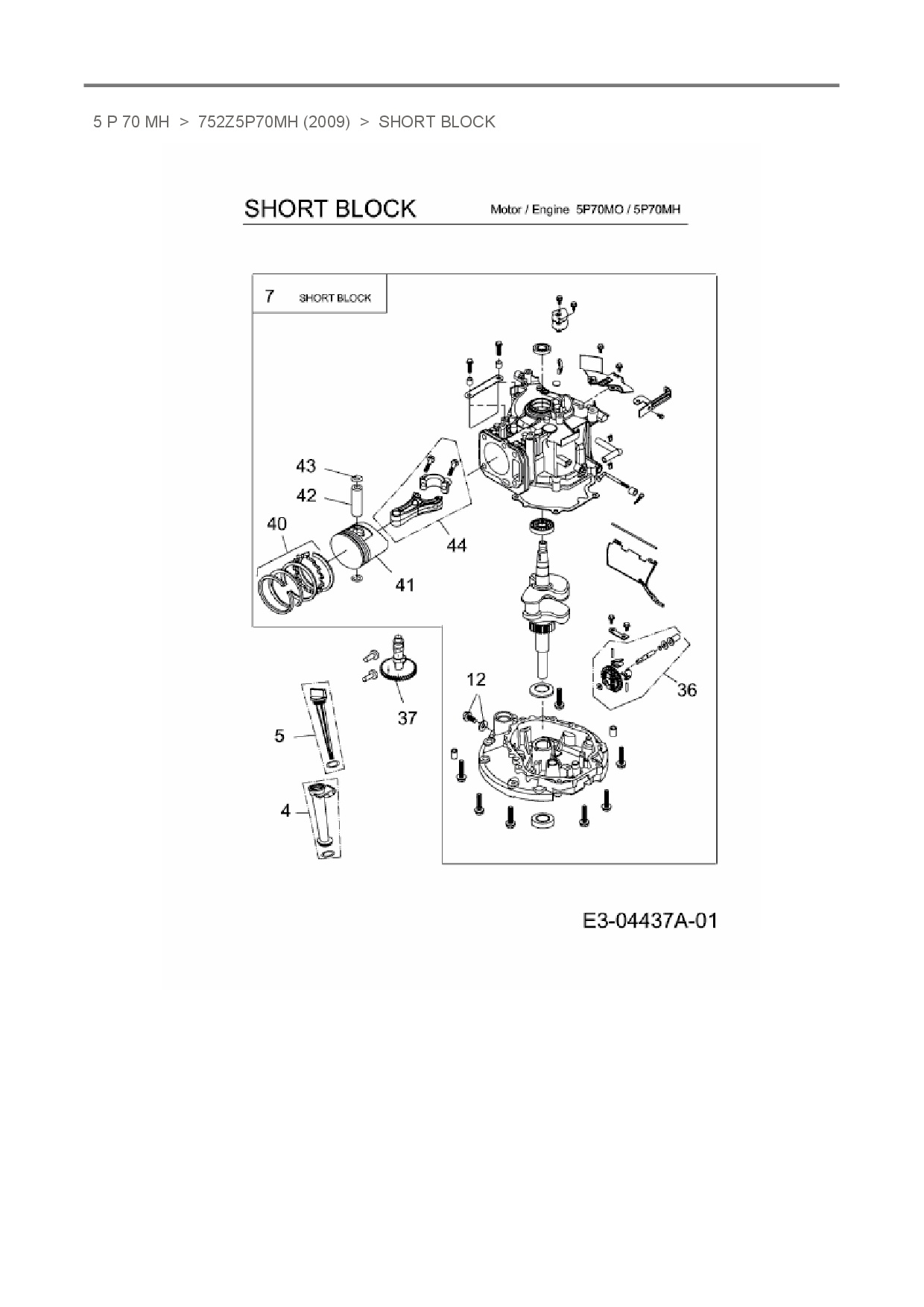 Ersatzteile für Vertikal MTD-Motoren 5 P 70 MH aus der Zeichnung Short Block: